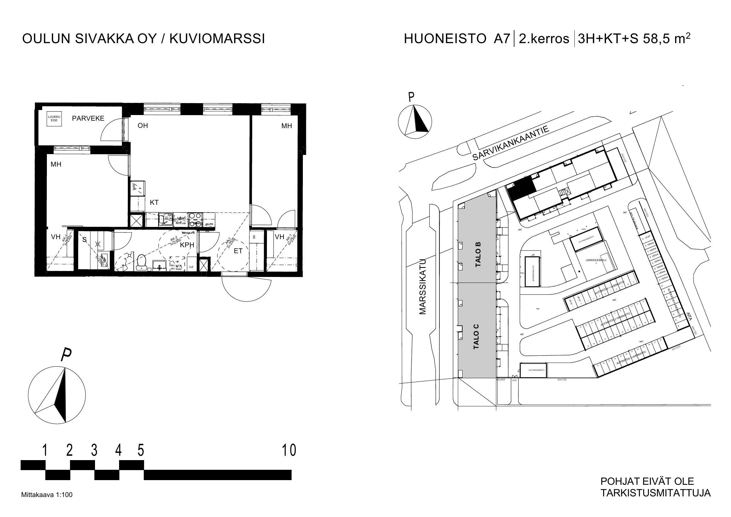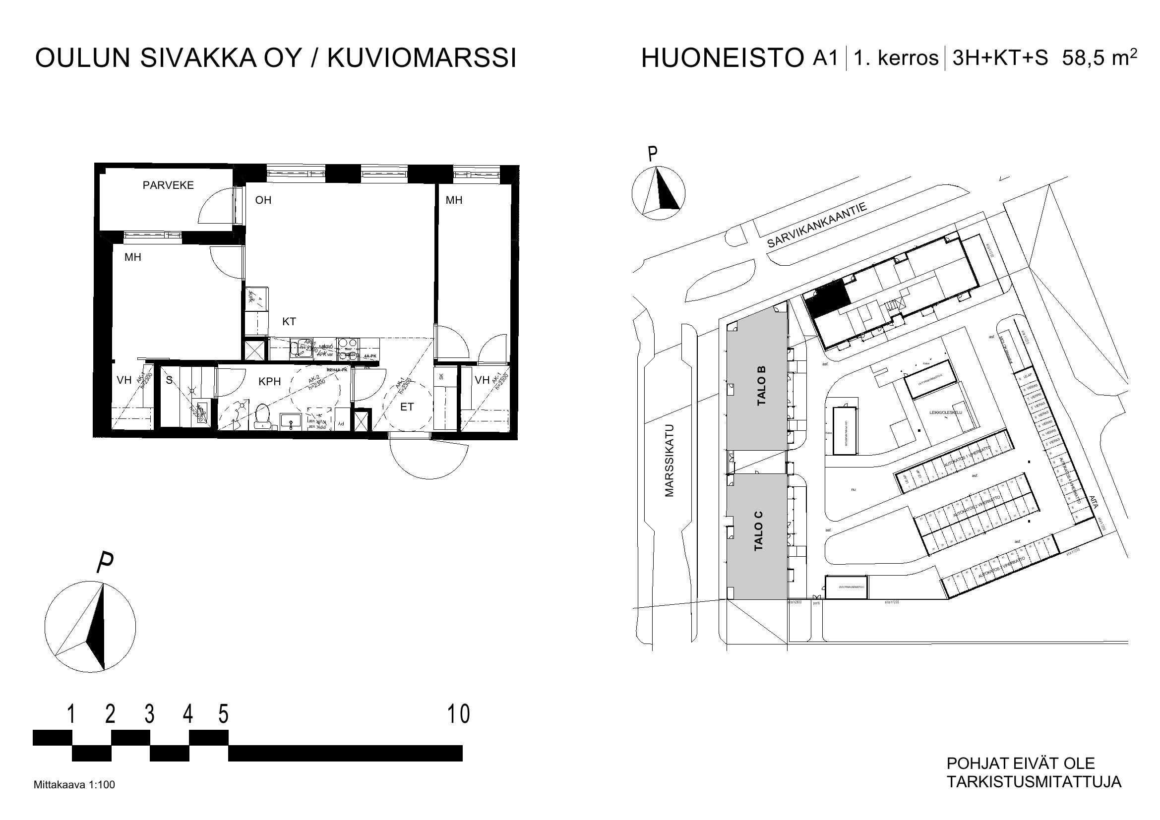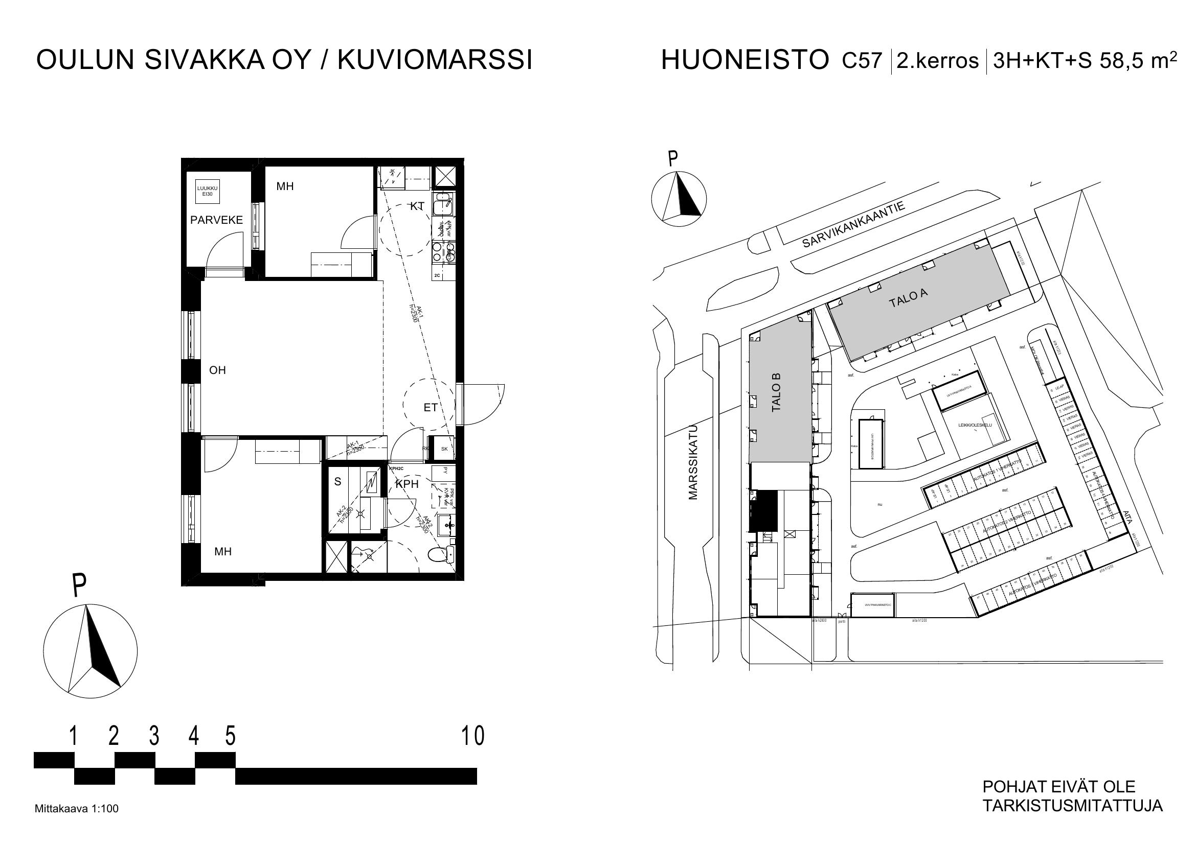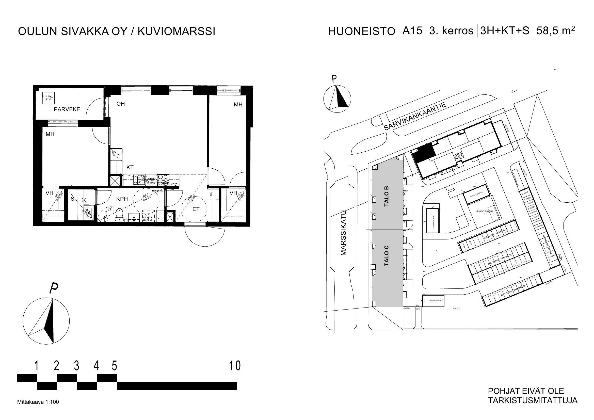 | 3h+kt+s | 58,5 – 62,5 m² | 862 – 930 €/kk | 13 kpl |