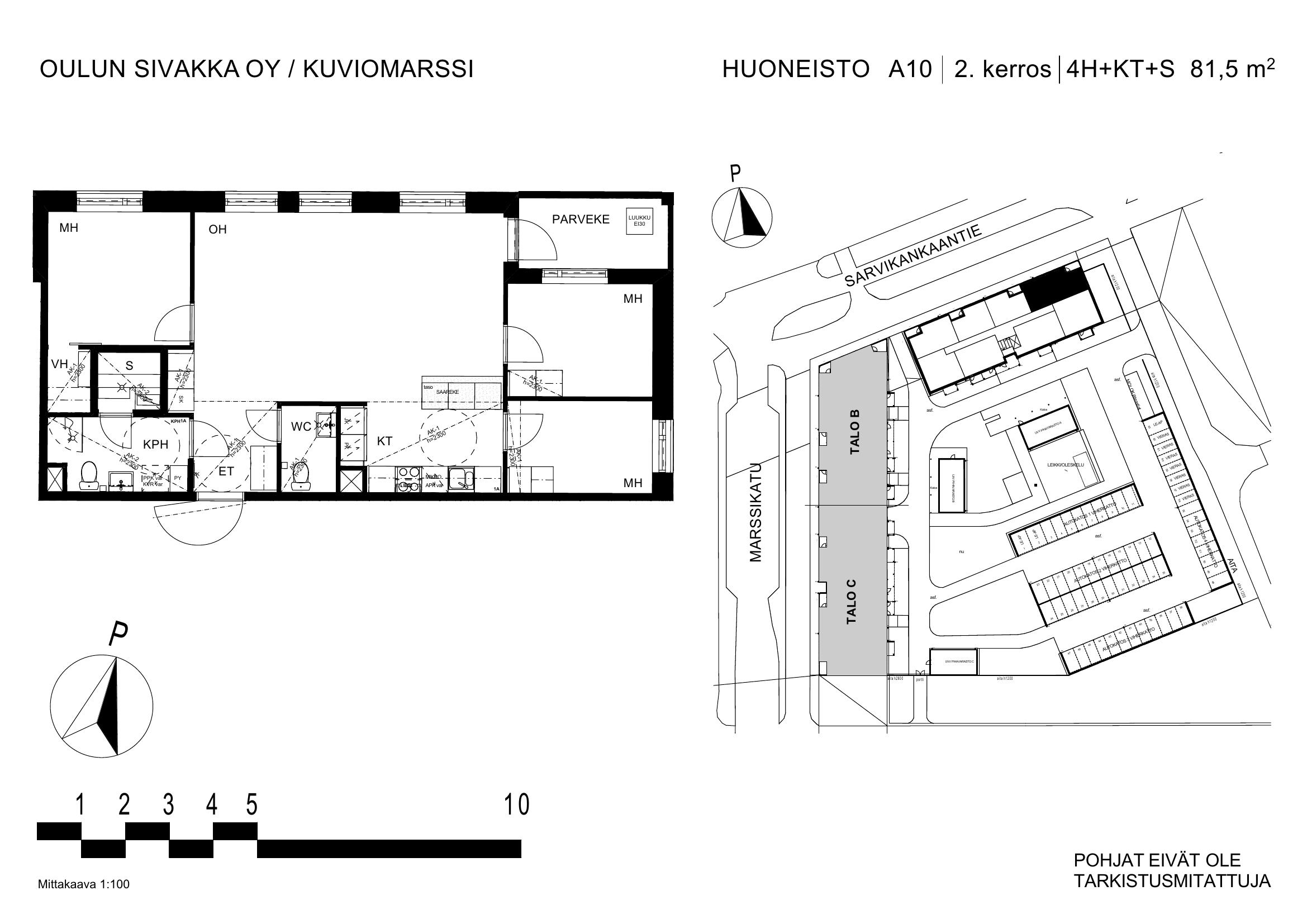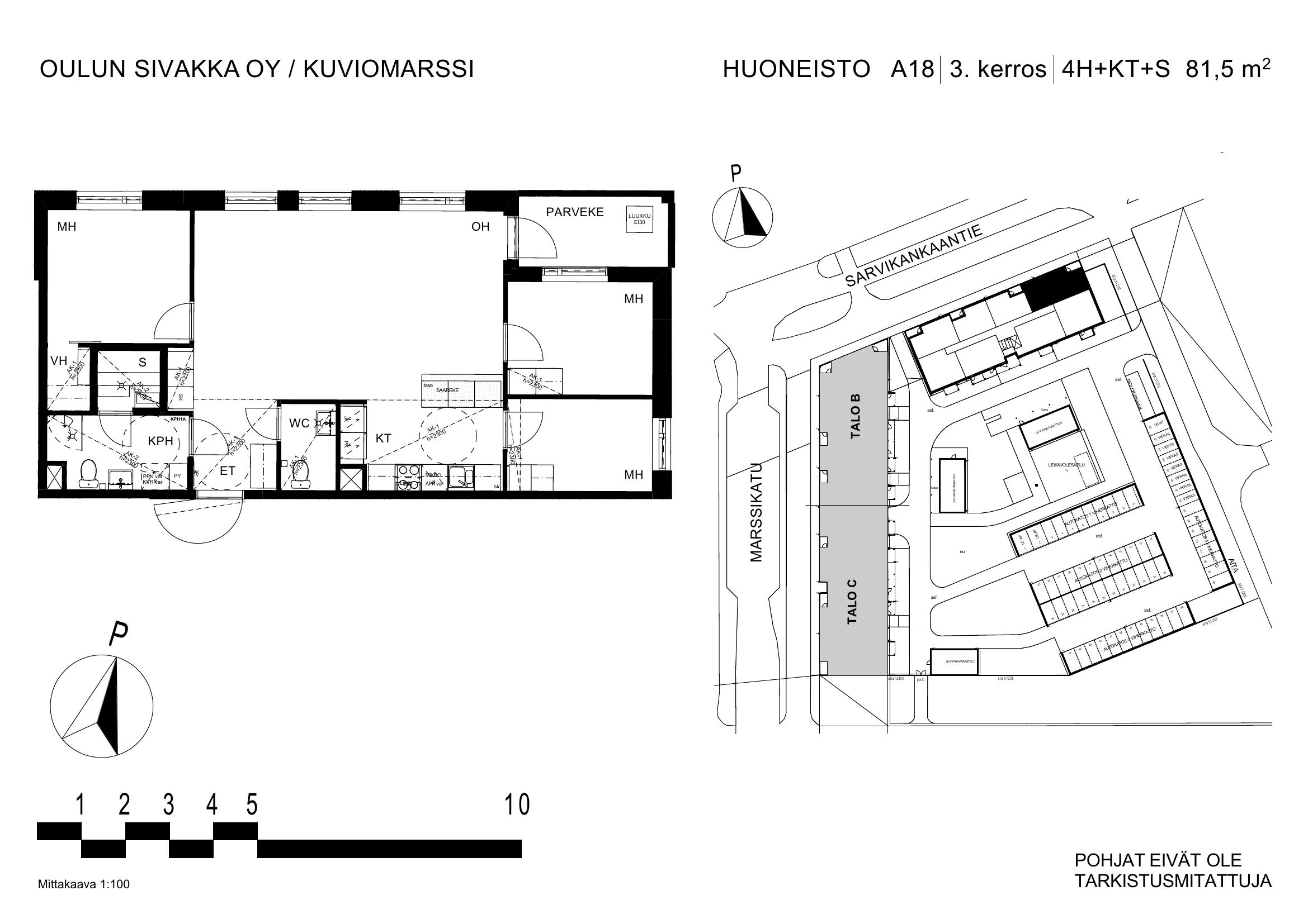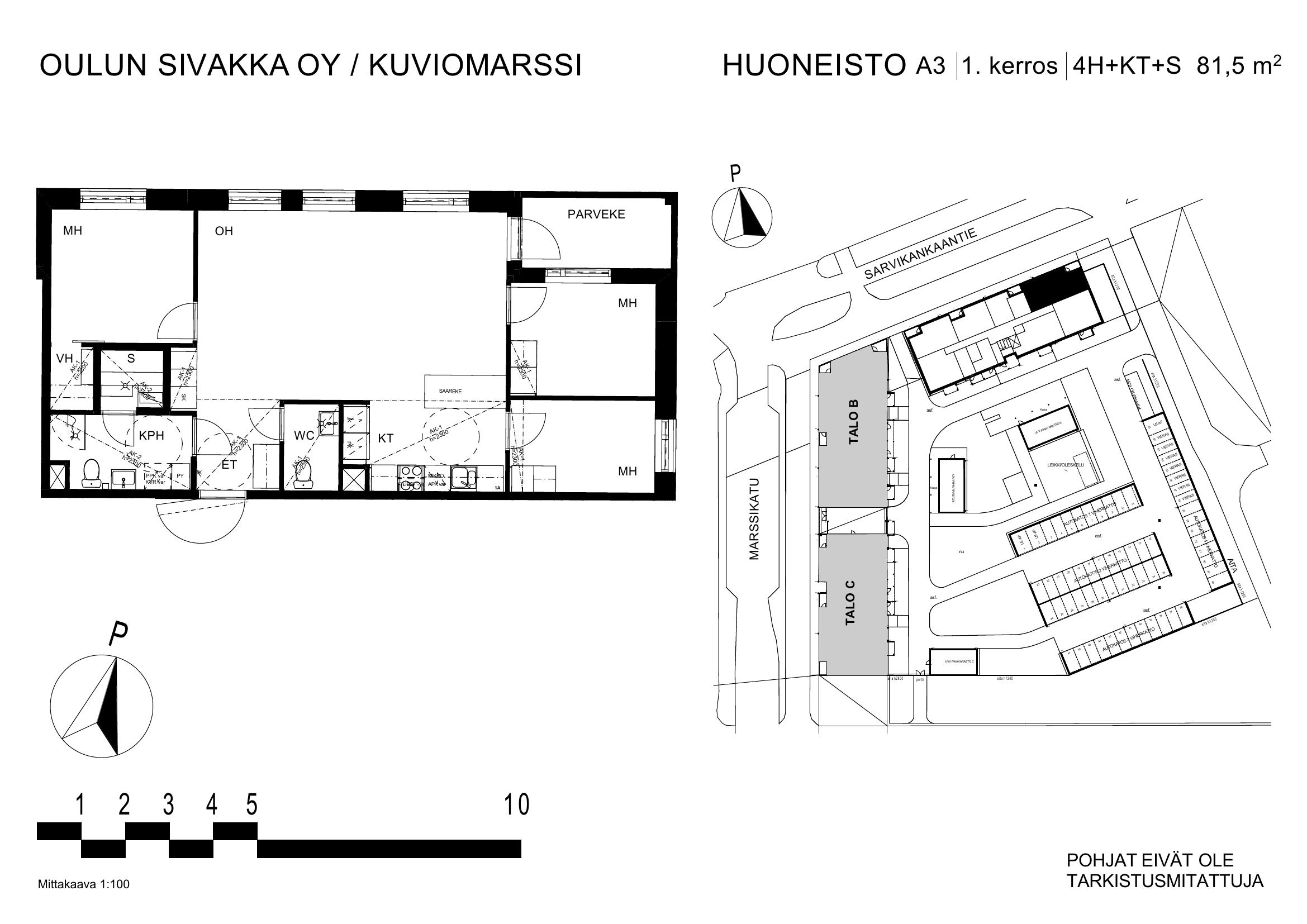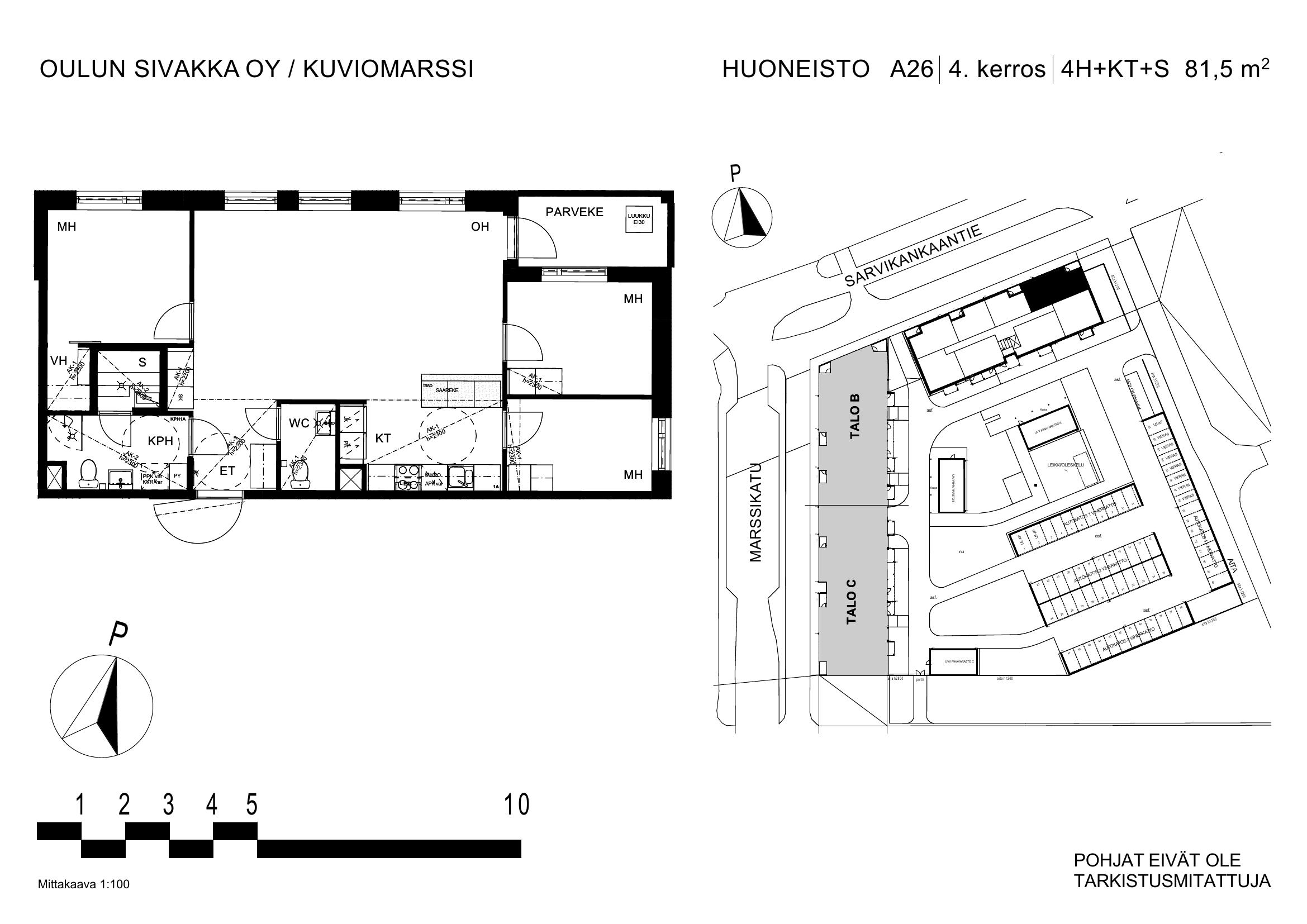 | 4h+kt+s | 81,5 m² | 1223 – 1260 €/kk | 4 kpl |