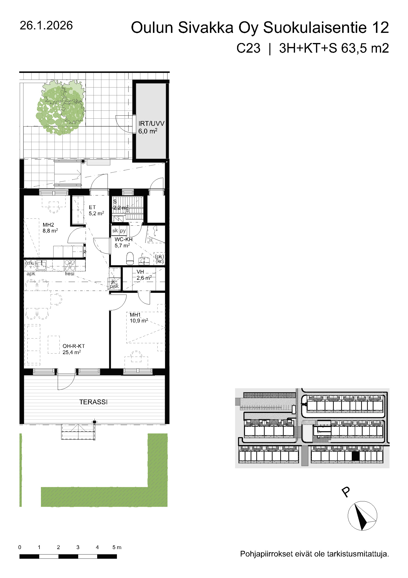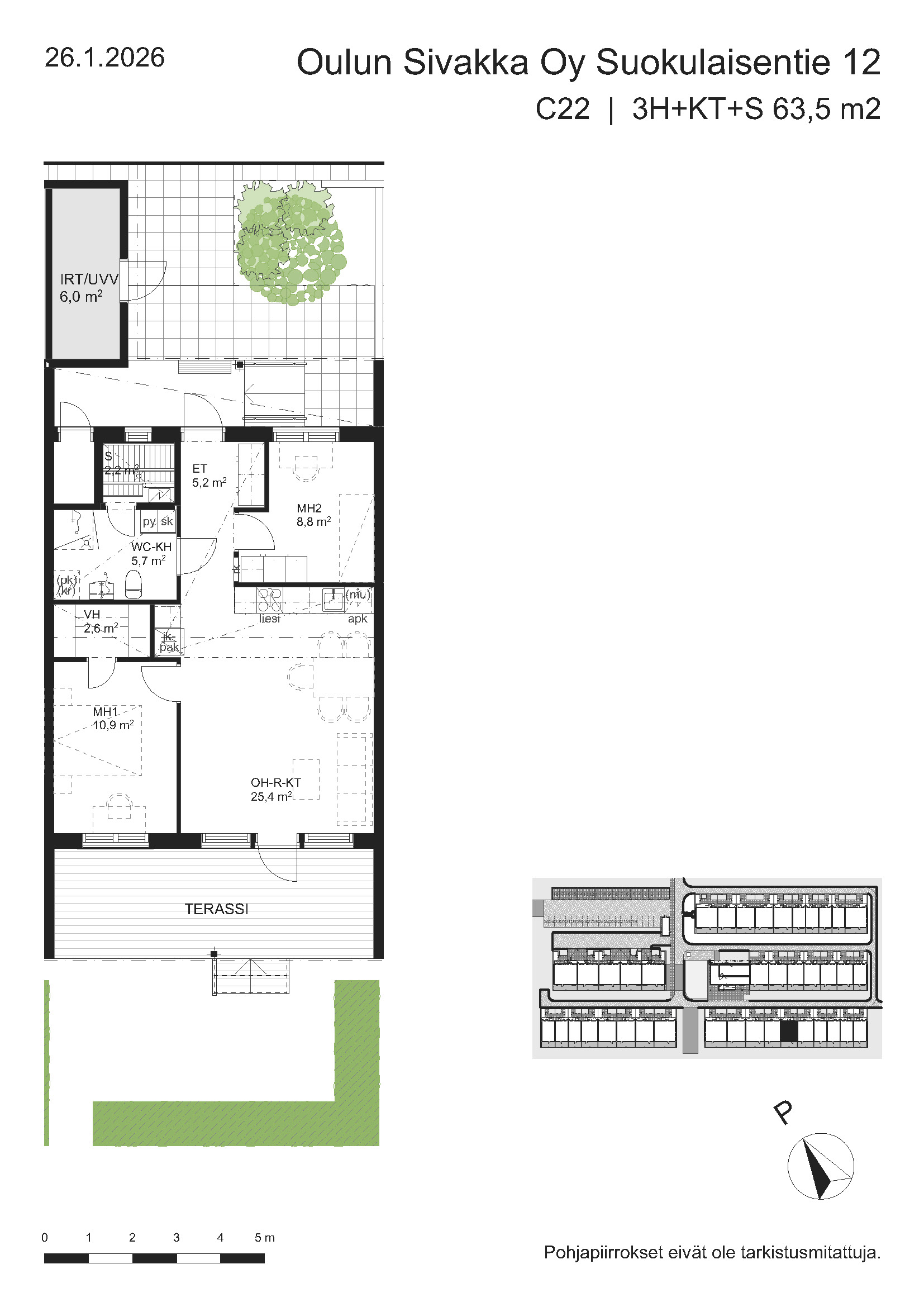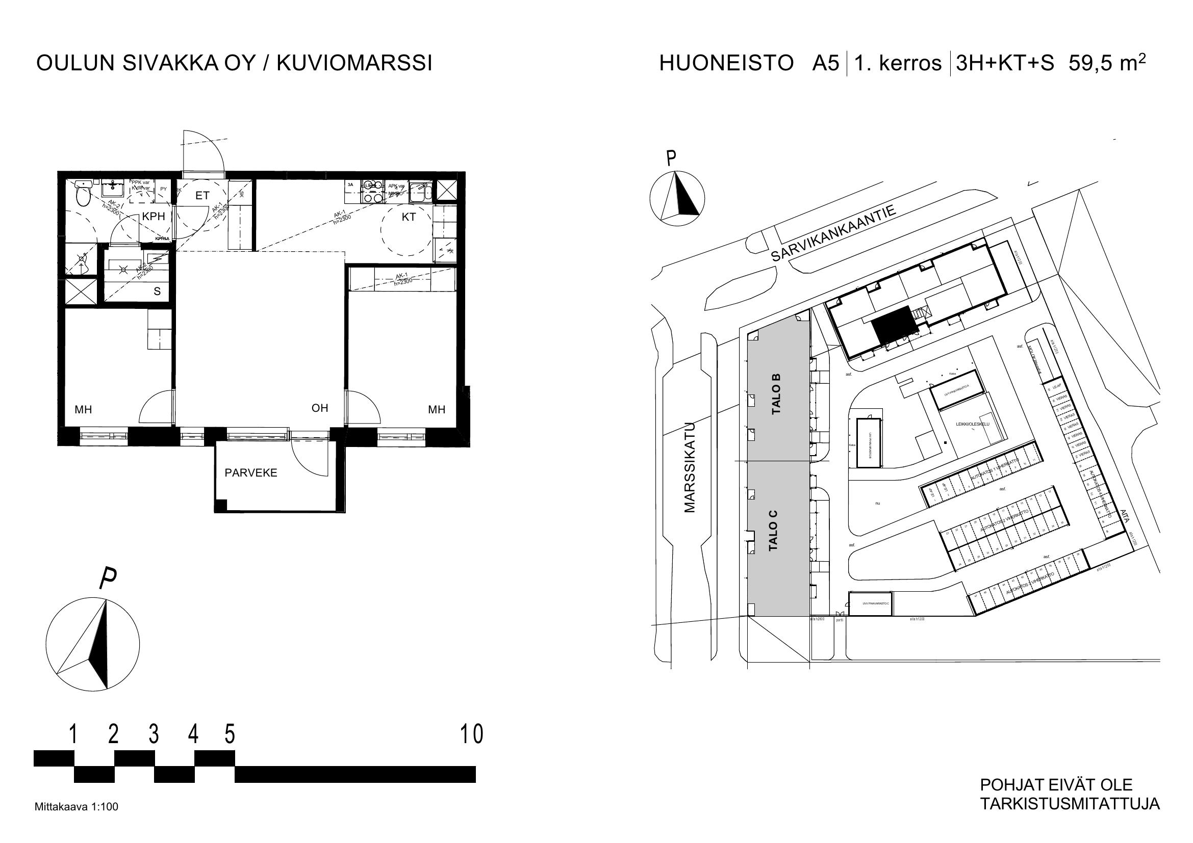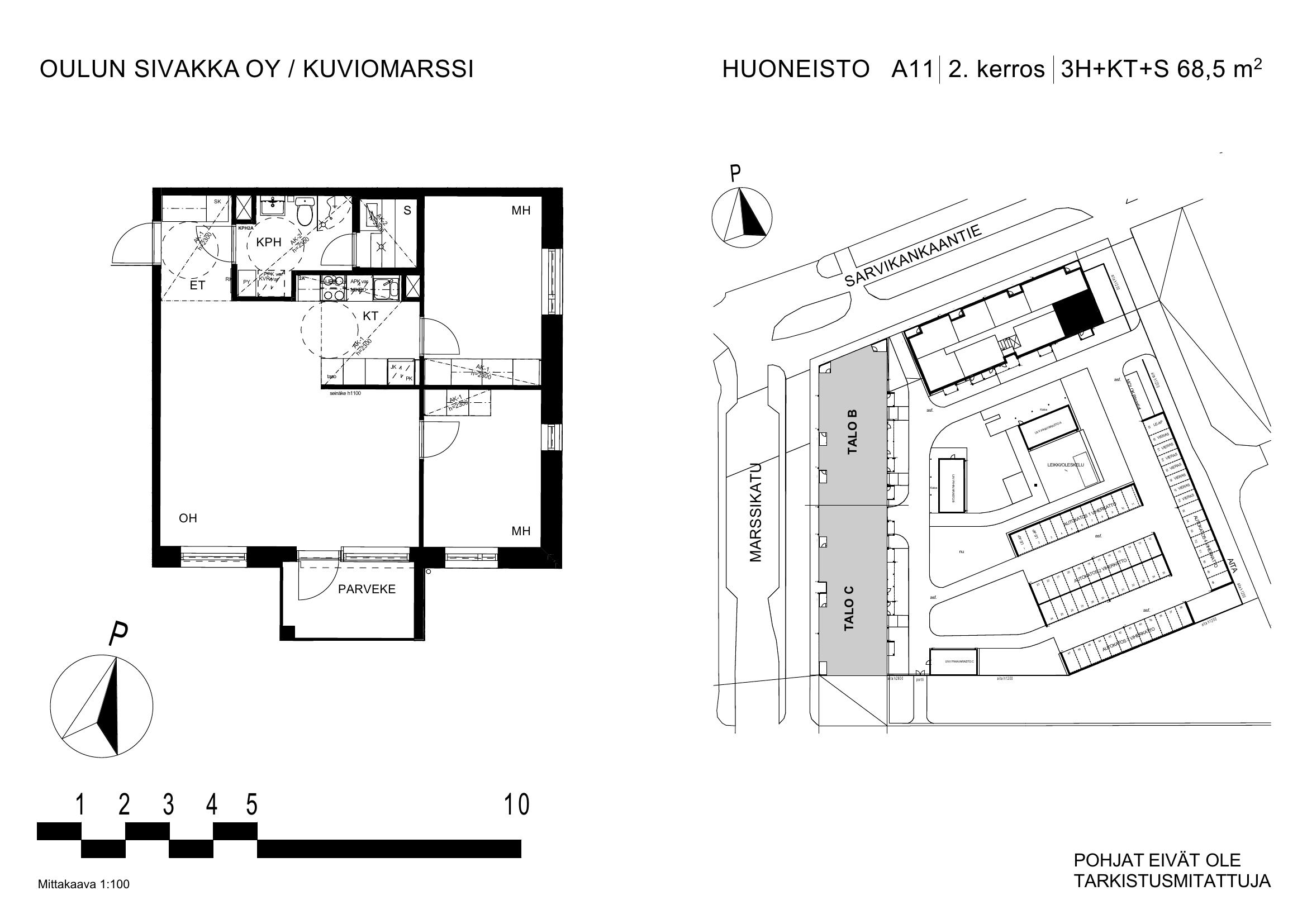 | 3h+kt+s | 63,5 – 74,5 m² | 877 – 988 €/kk | 20 kpl |