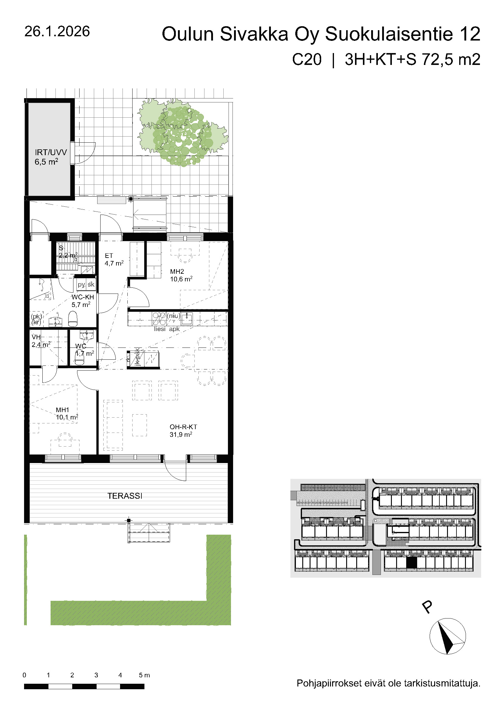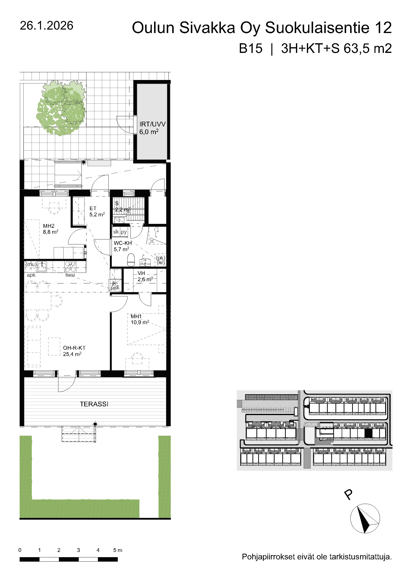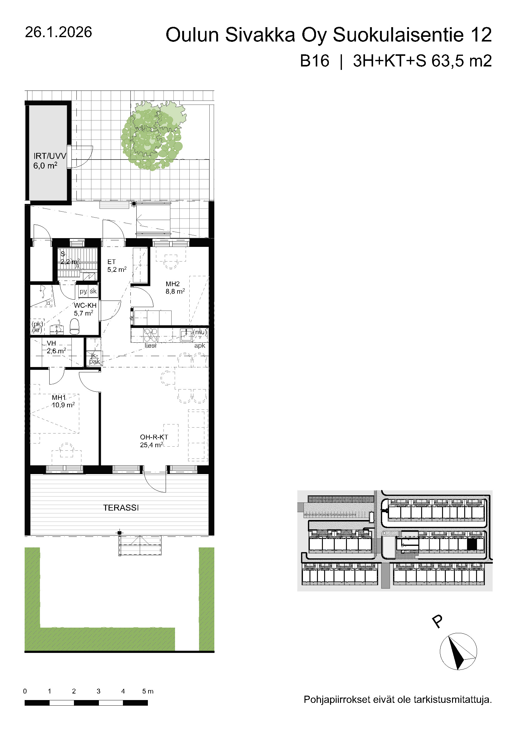 | 3h+kt+s | 63,5 – 74,5 m² | 877 – 988 €/kk | 20 kpl |