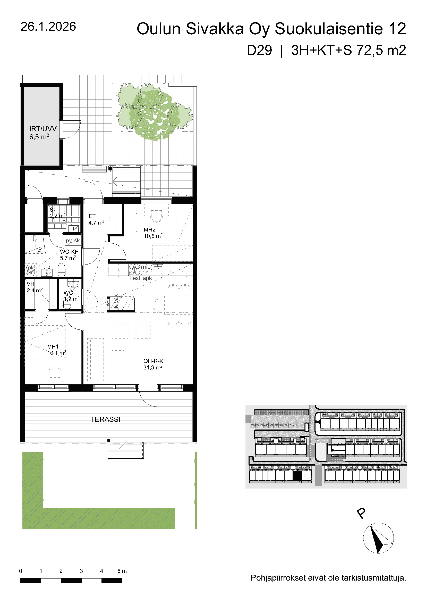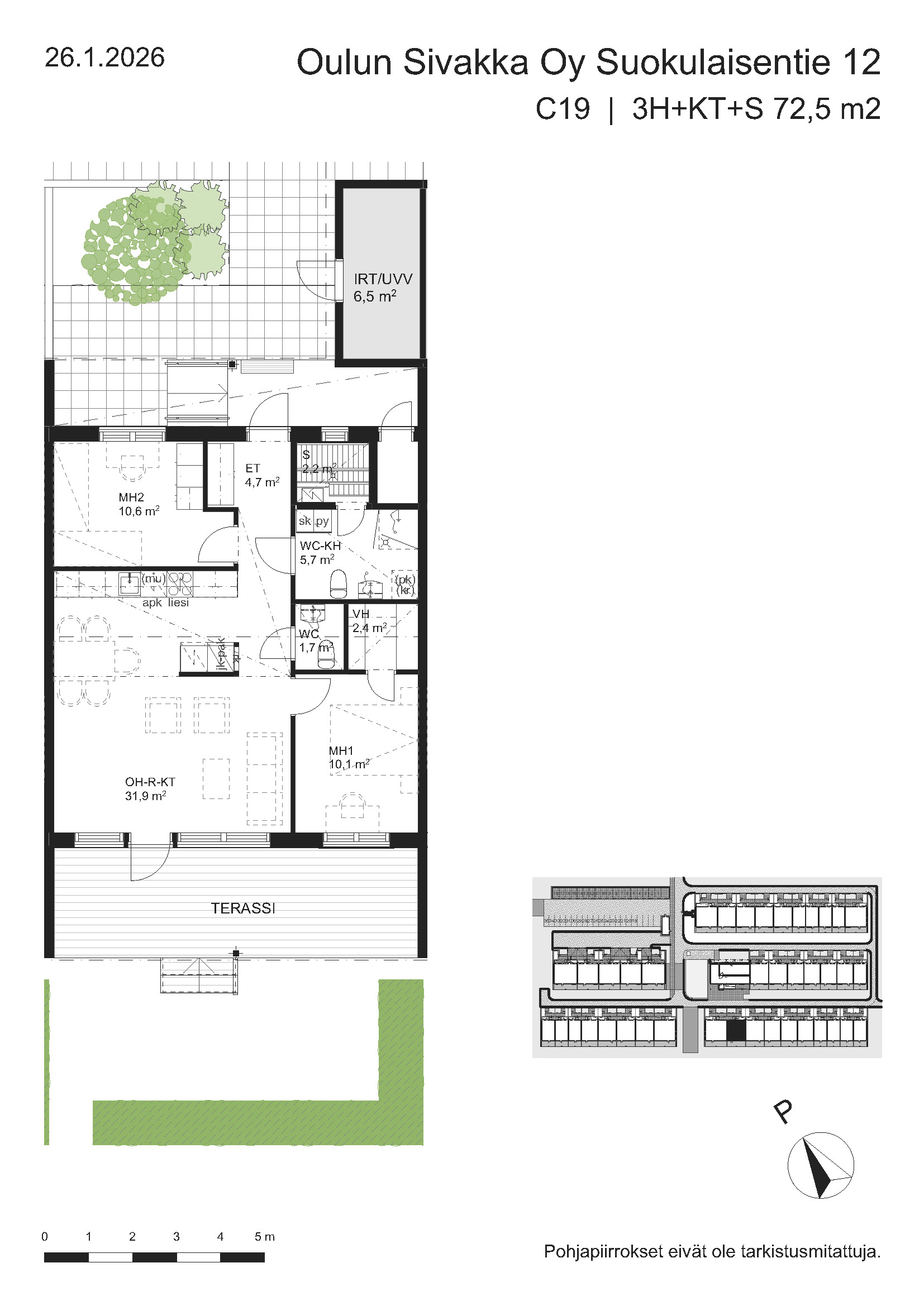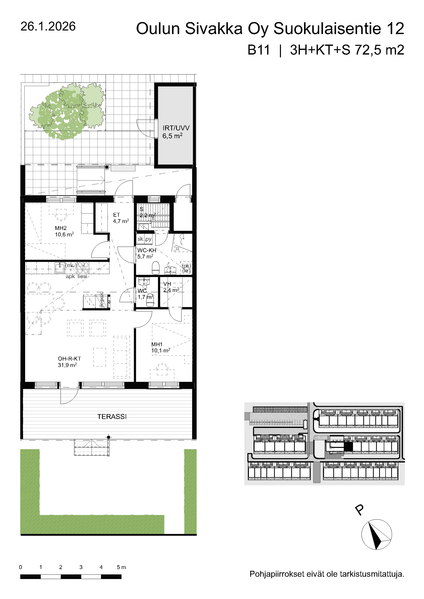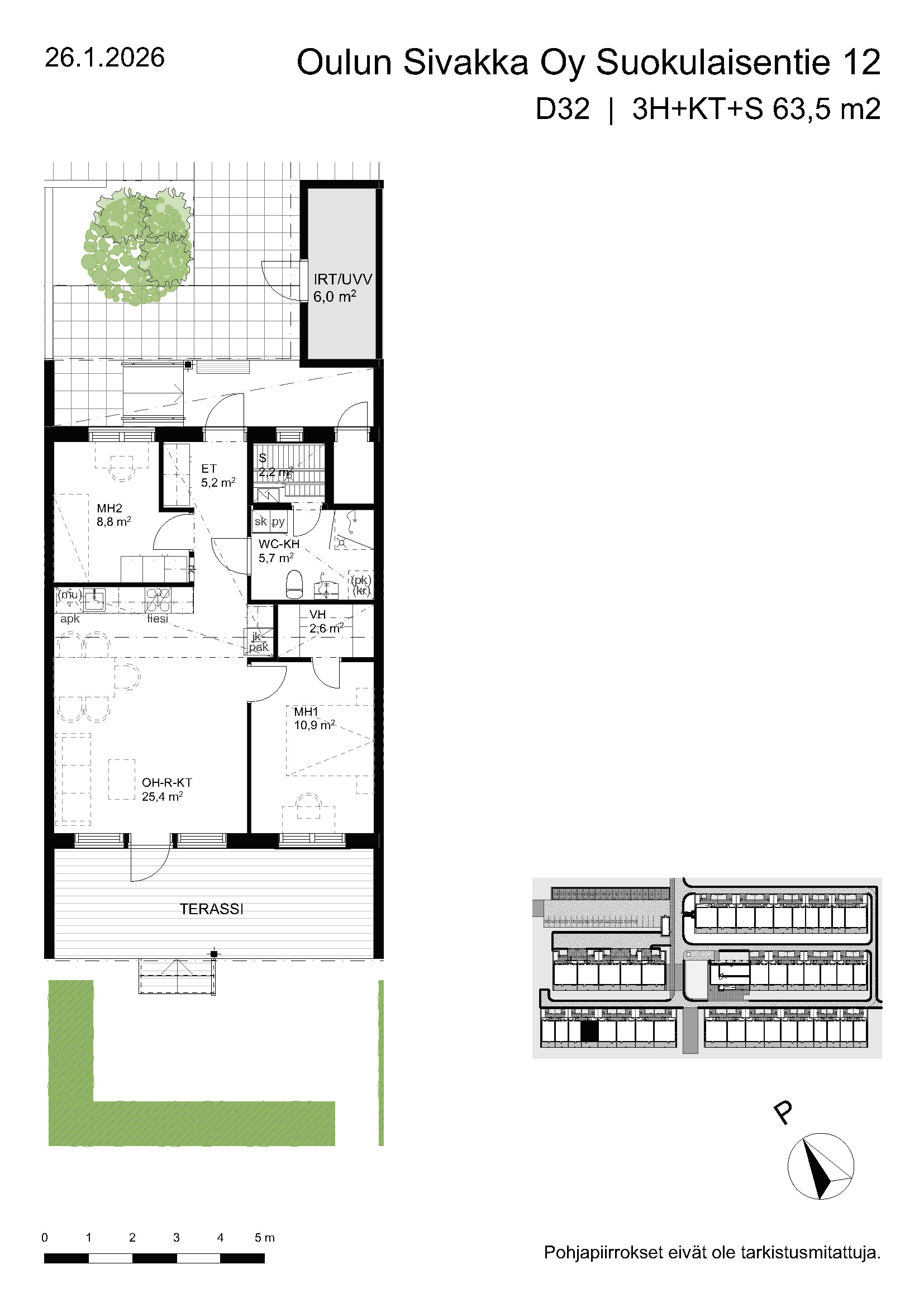 | 3h+kt+s | 63,5 – 74,5 m² | 877 – 988 €/kk | 20 kpl |