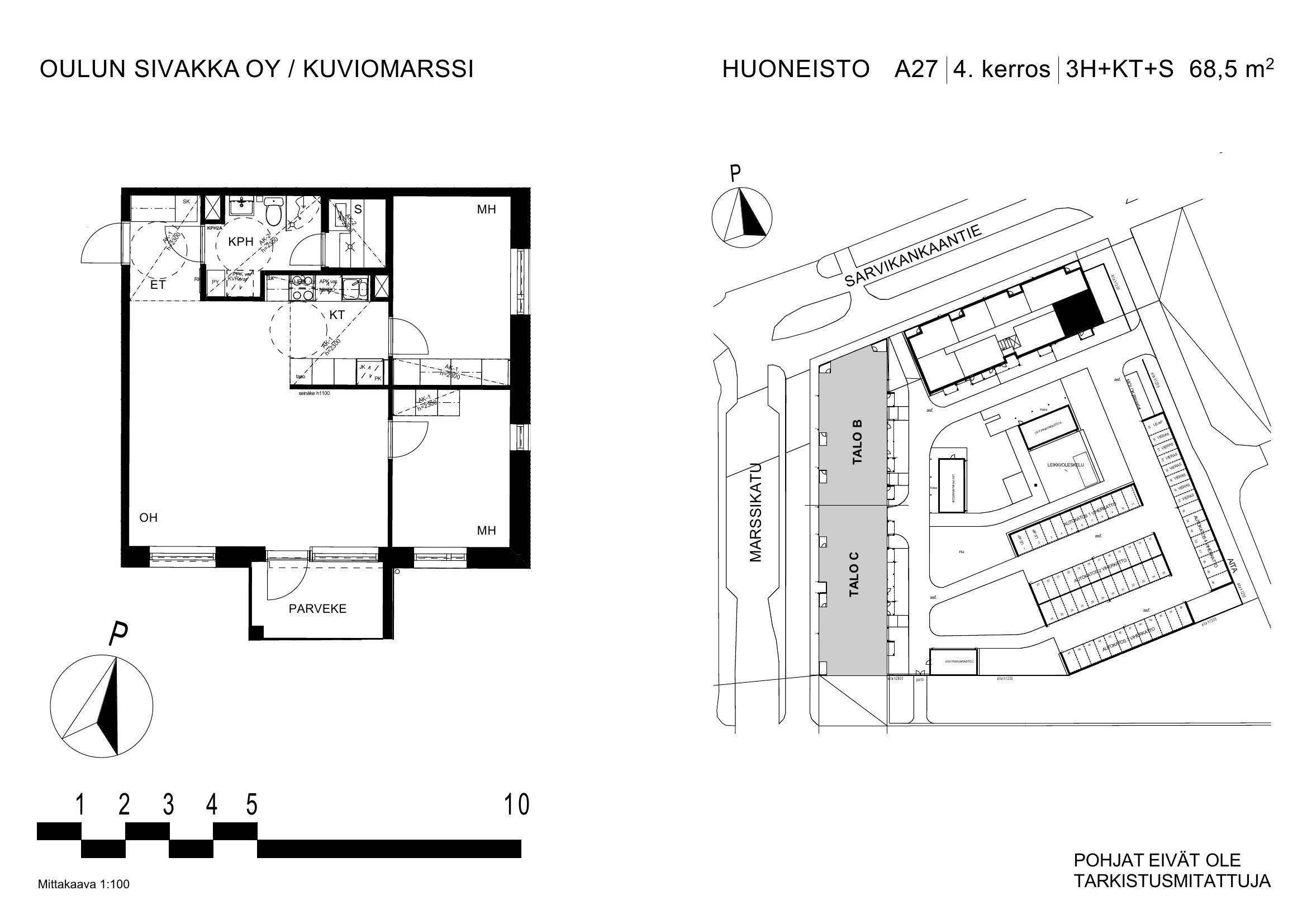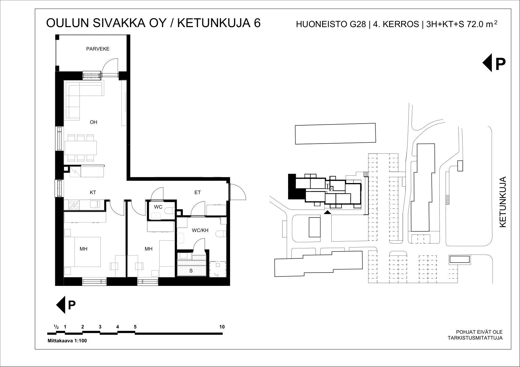 | 3h+kt+s | 72 m² | 823 – 847 €/kk | 4 kpl |