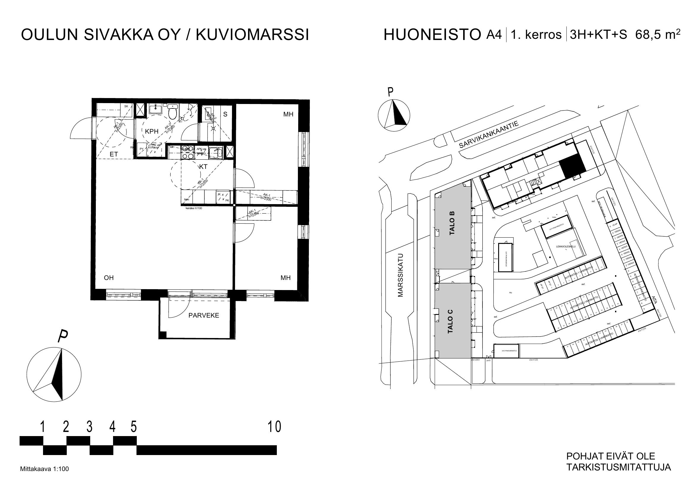 | 3h+kt+s | 68,5 m² | 1060 – 1093 €/kk | 4 kpl |