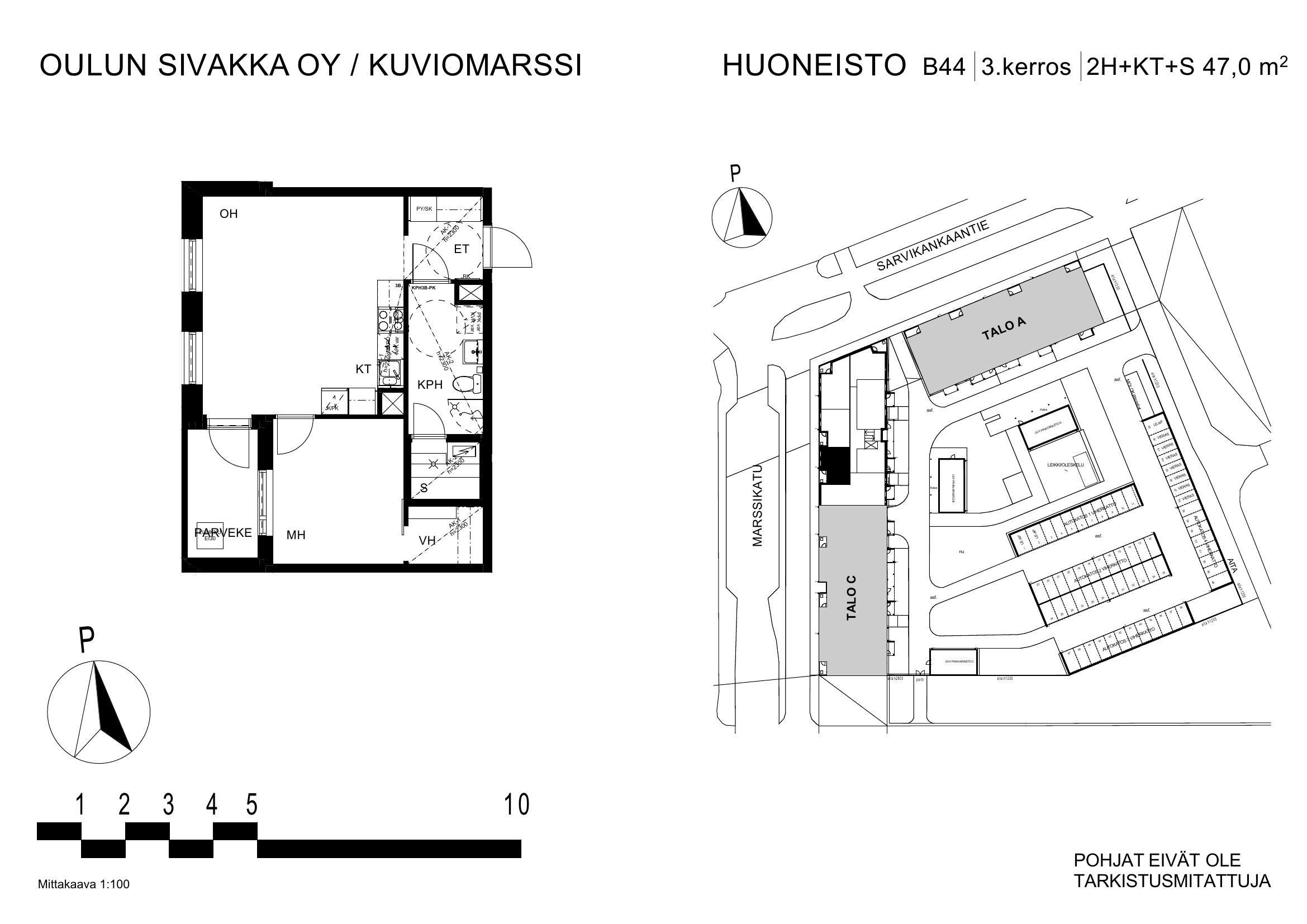 | 2h+kt+s | 44,0 – 47,0 m² | 674 – 727 €/kk | 9 kpl |