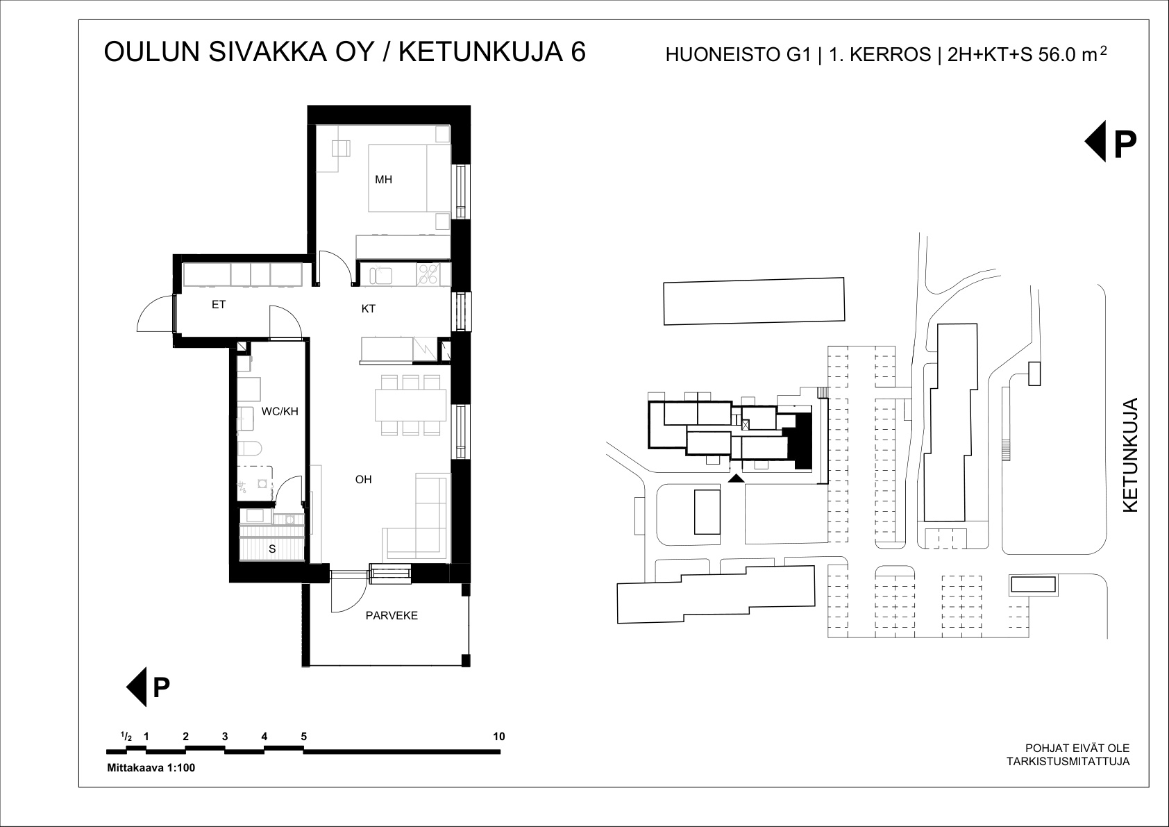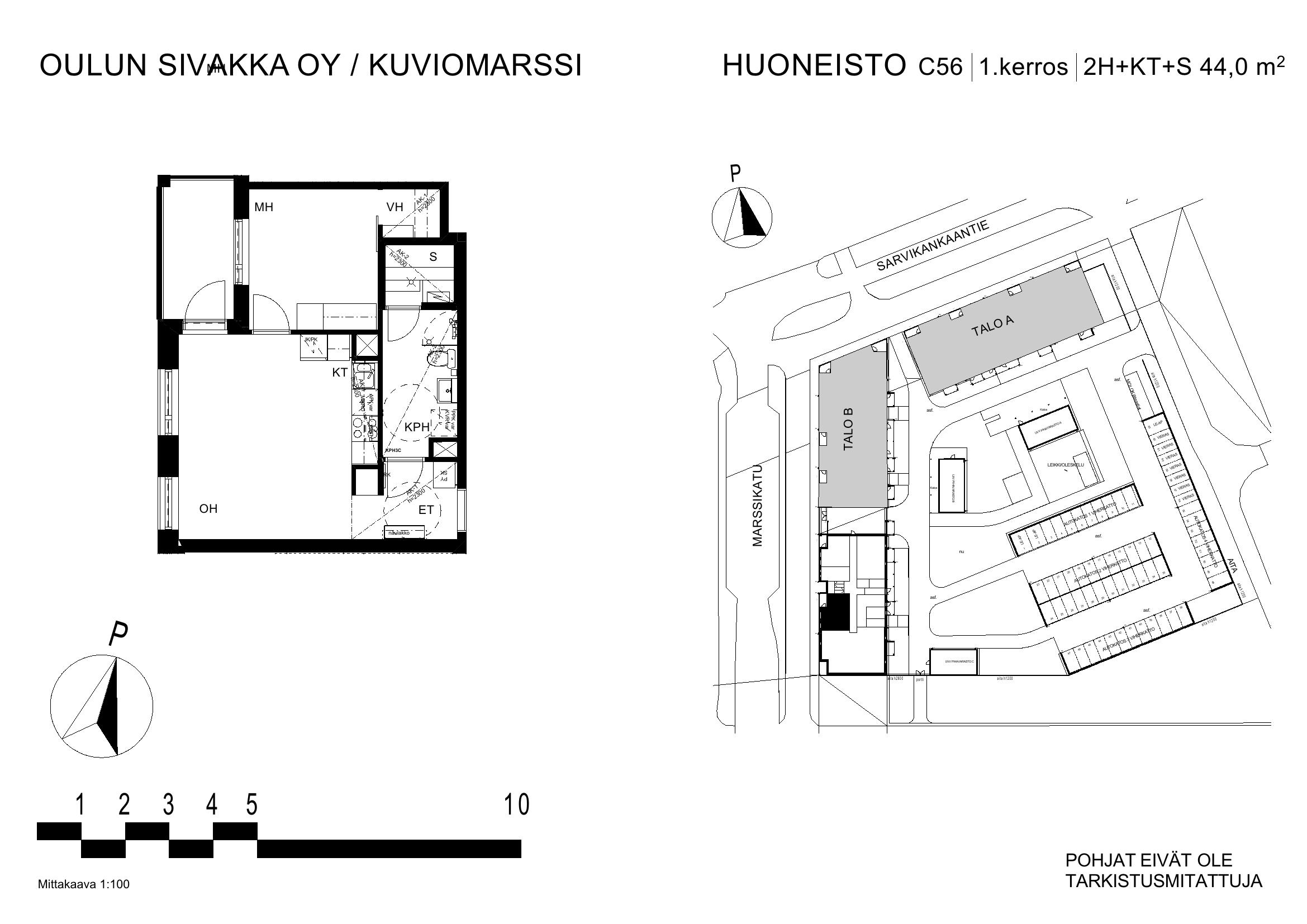 | 2h+kt+s | 56 m² | 695 €/kk | 1 kpl |