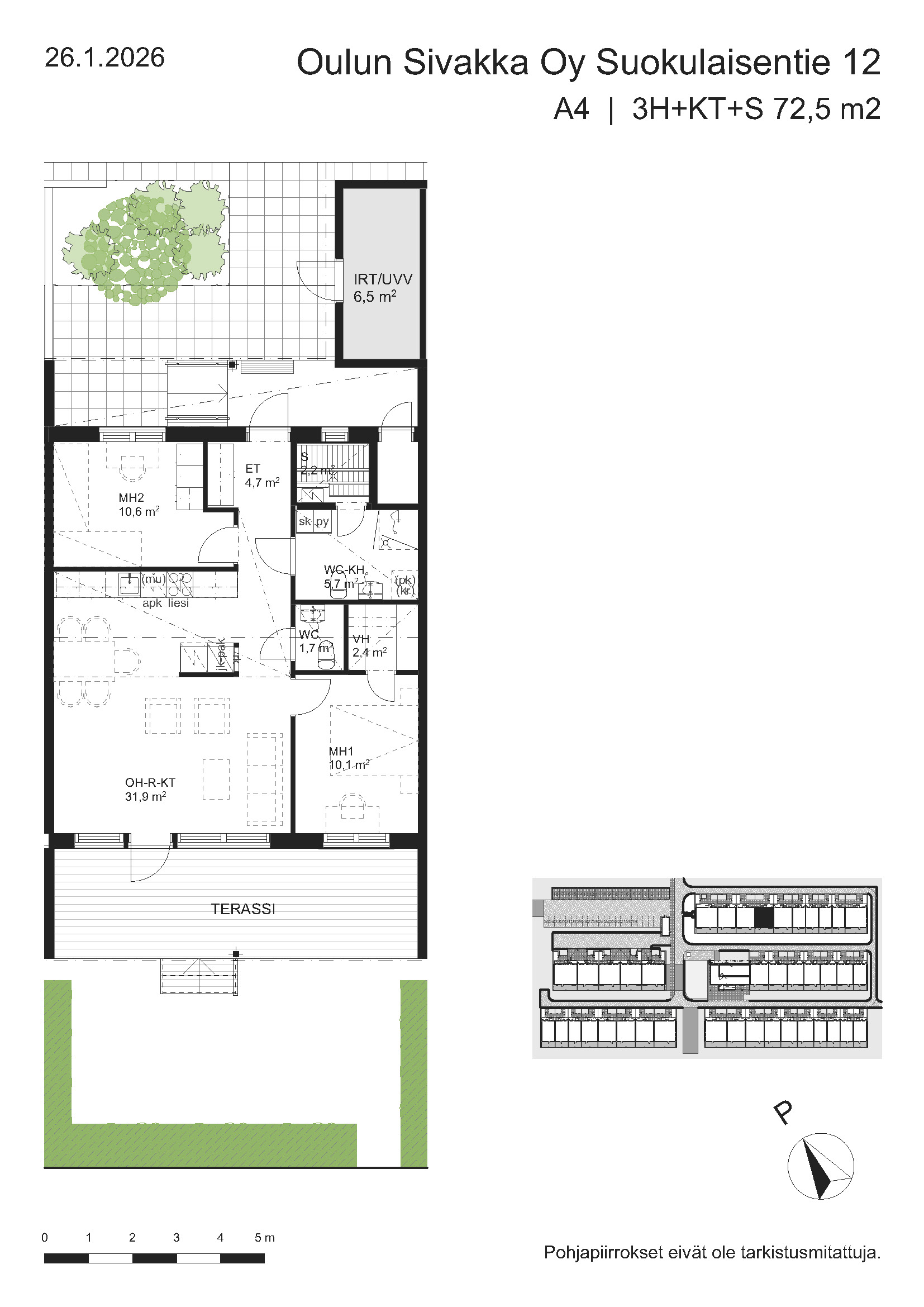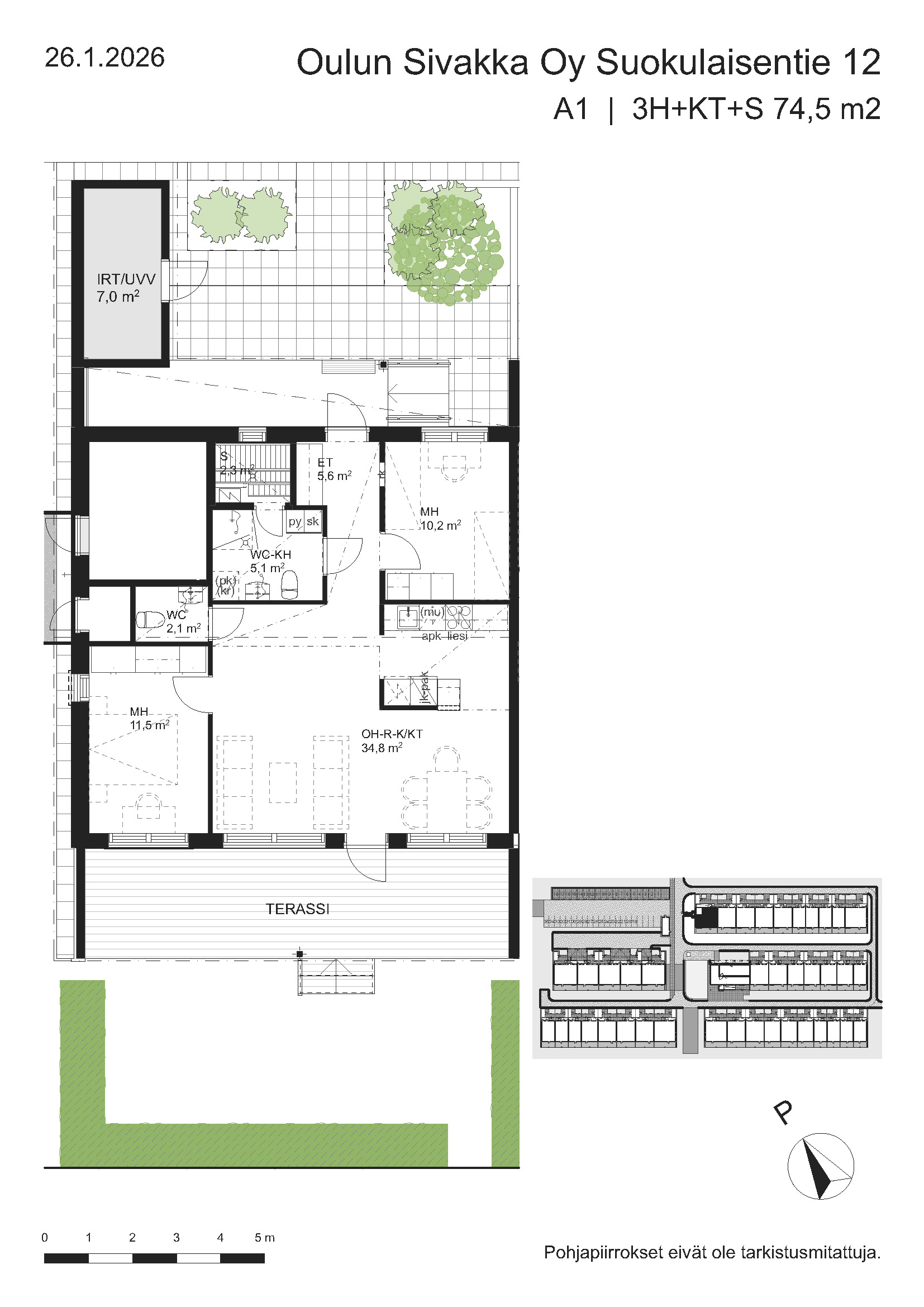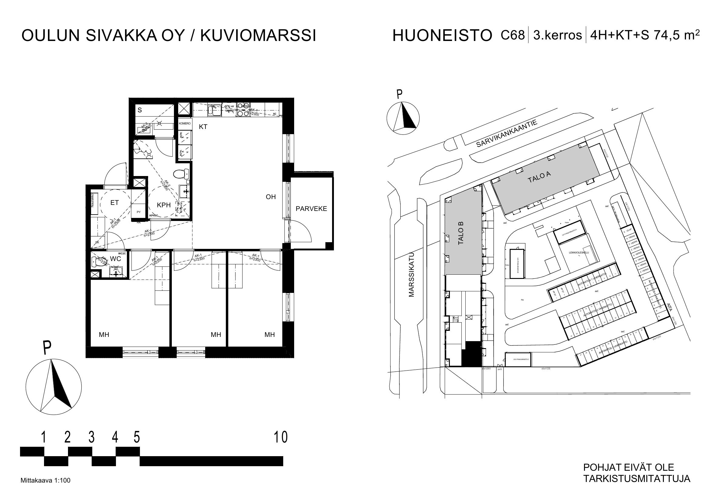 | 4h+kt+s | 74,5 m² | 1054 – 1075 €/kk | 3 kpl |