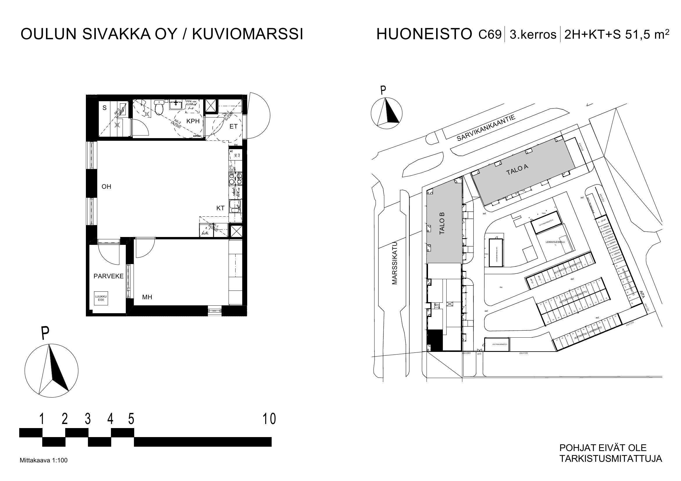 | 2h+kt+s | 50,5 m² | 718 €/kk | 12 kpl |