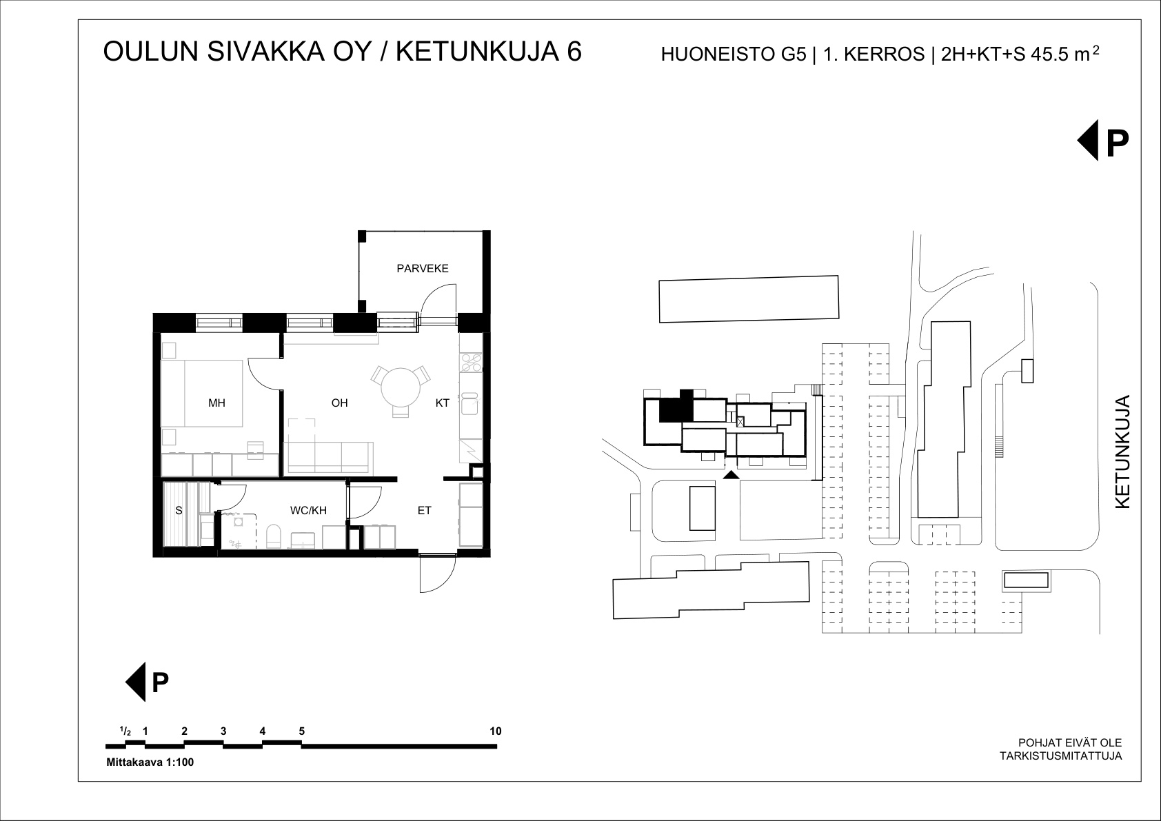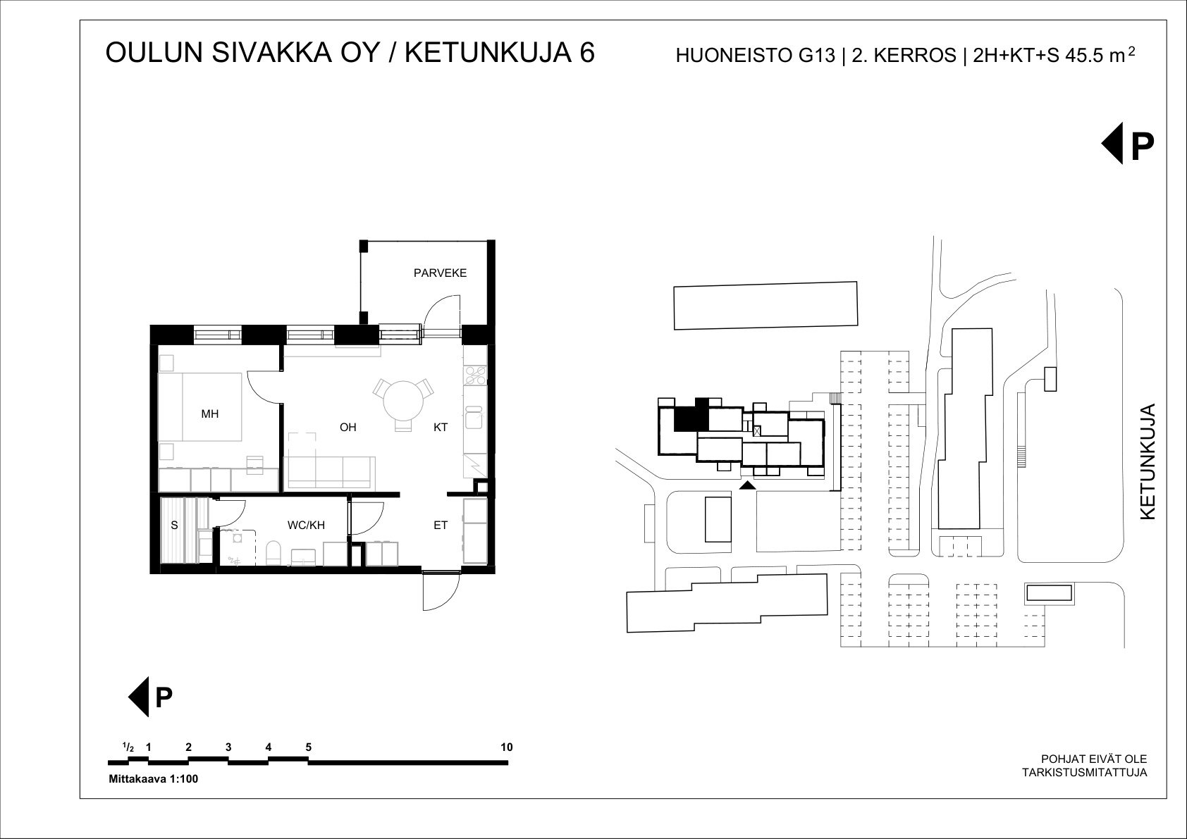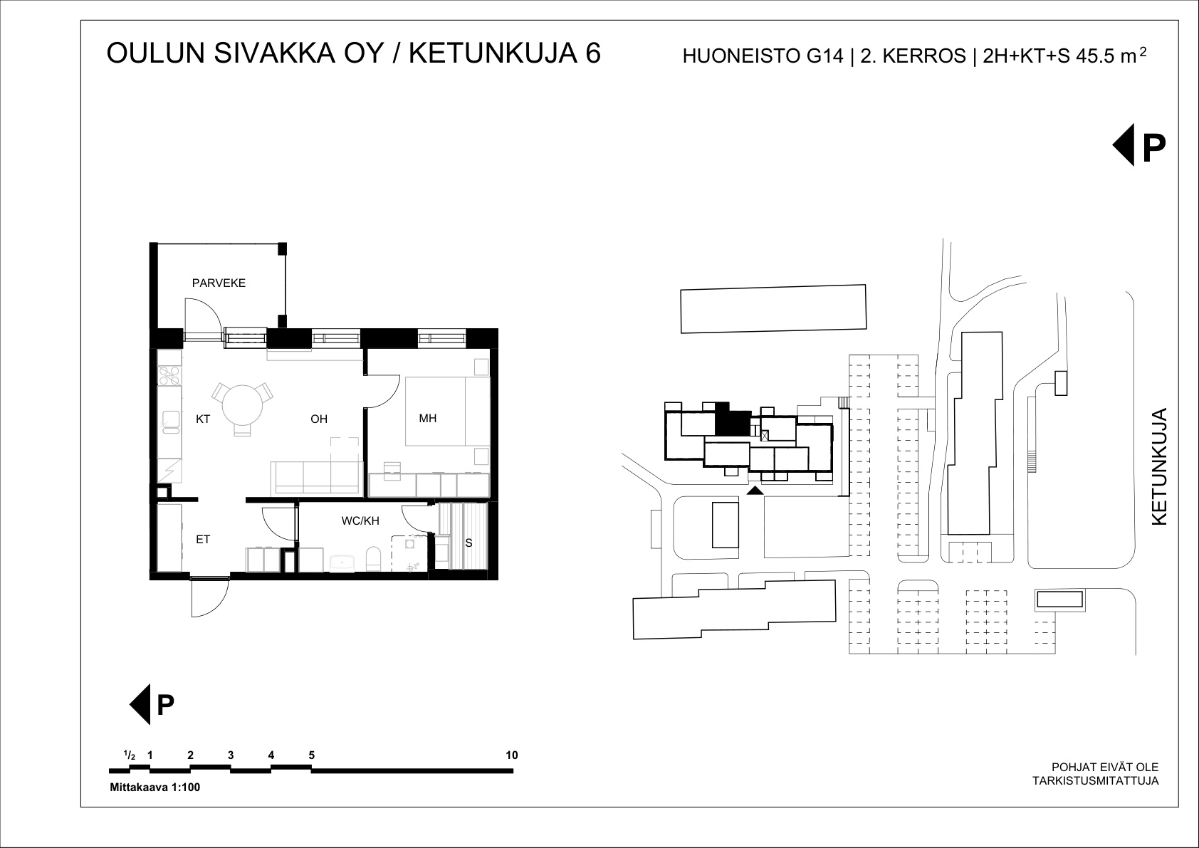 | 2h+kt+s | 45,5 m² | 615 – 633 €/kk | 11 kpl |