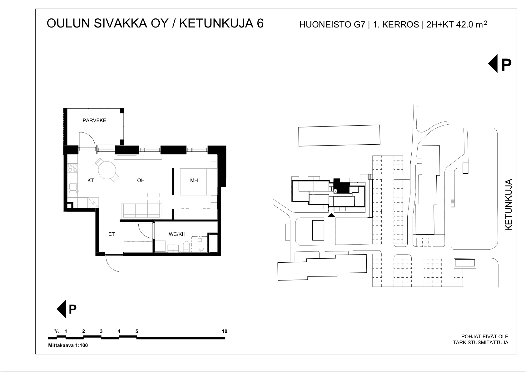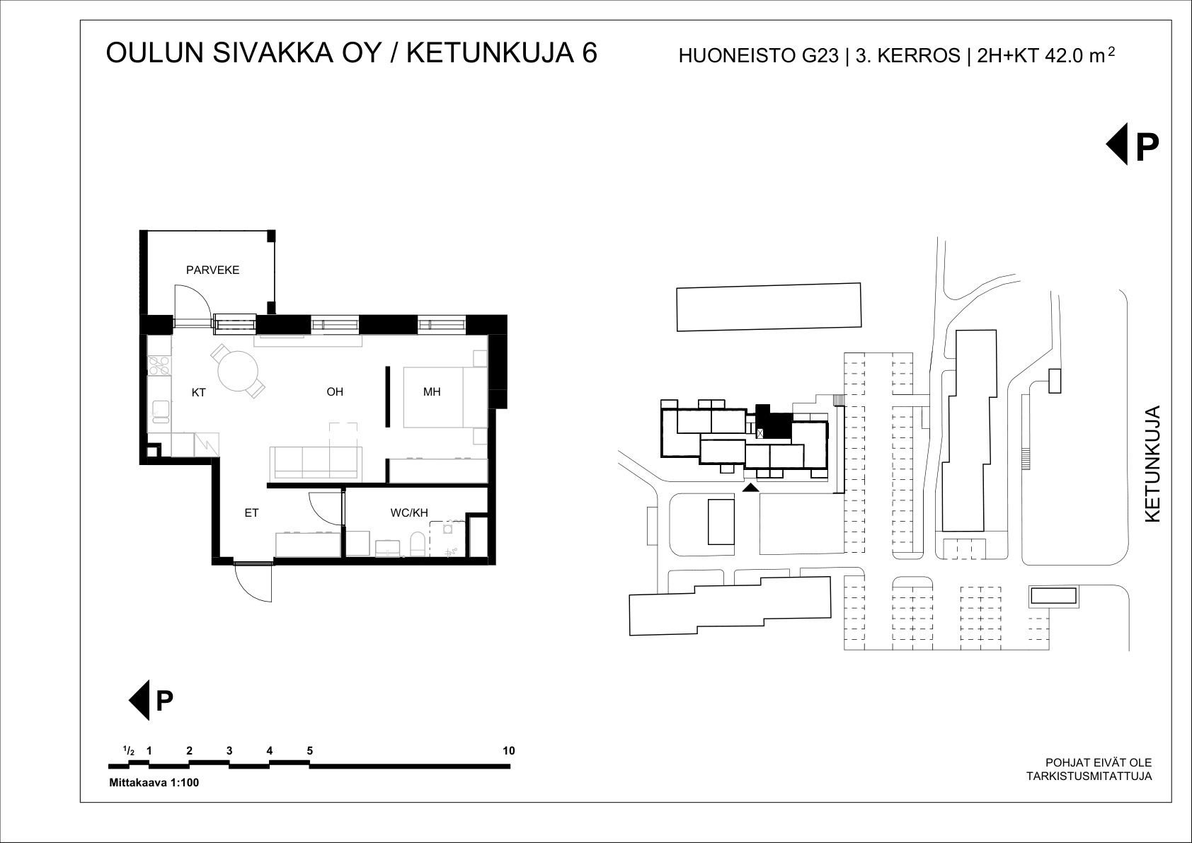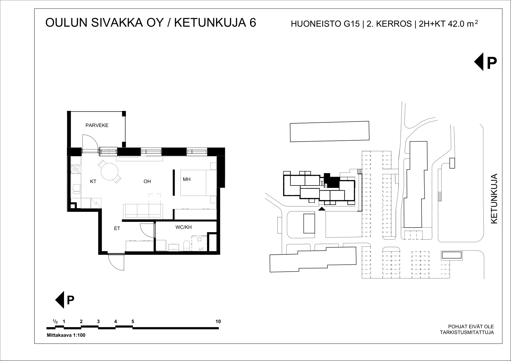 | 2h+kt | 42 m² | 583 – 601 €/kk | 4 kpl |