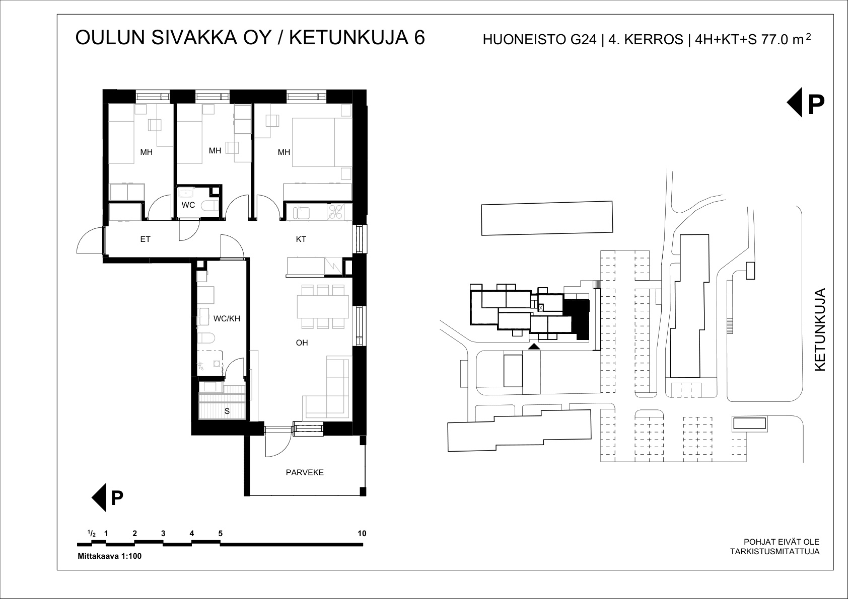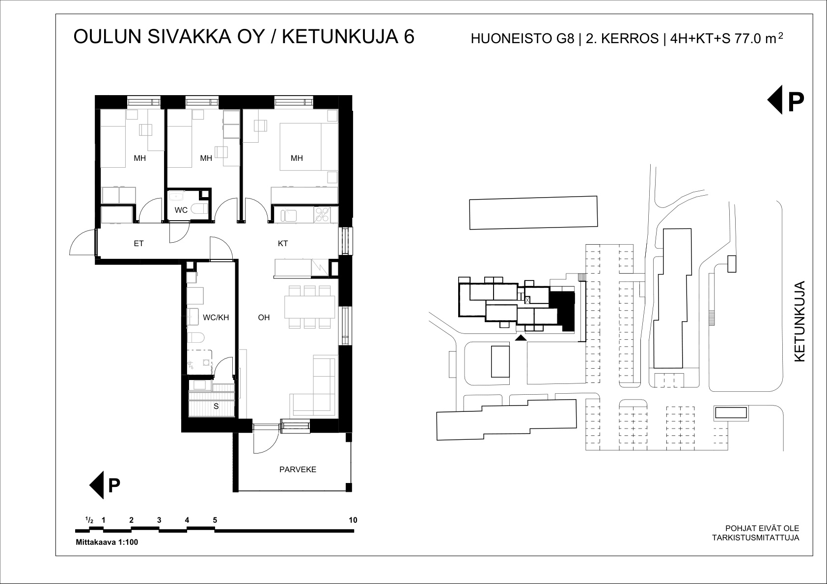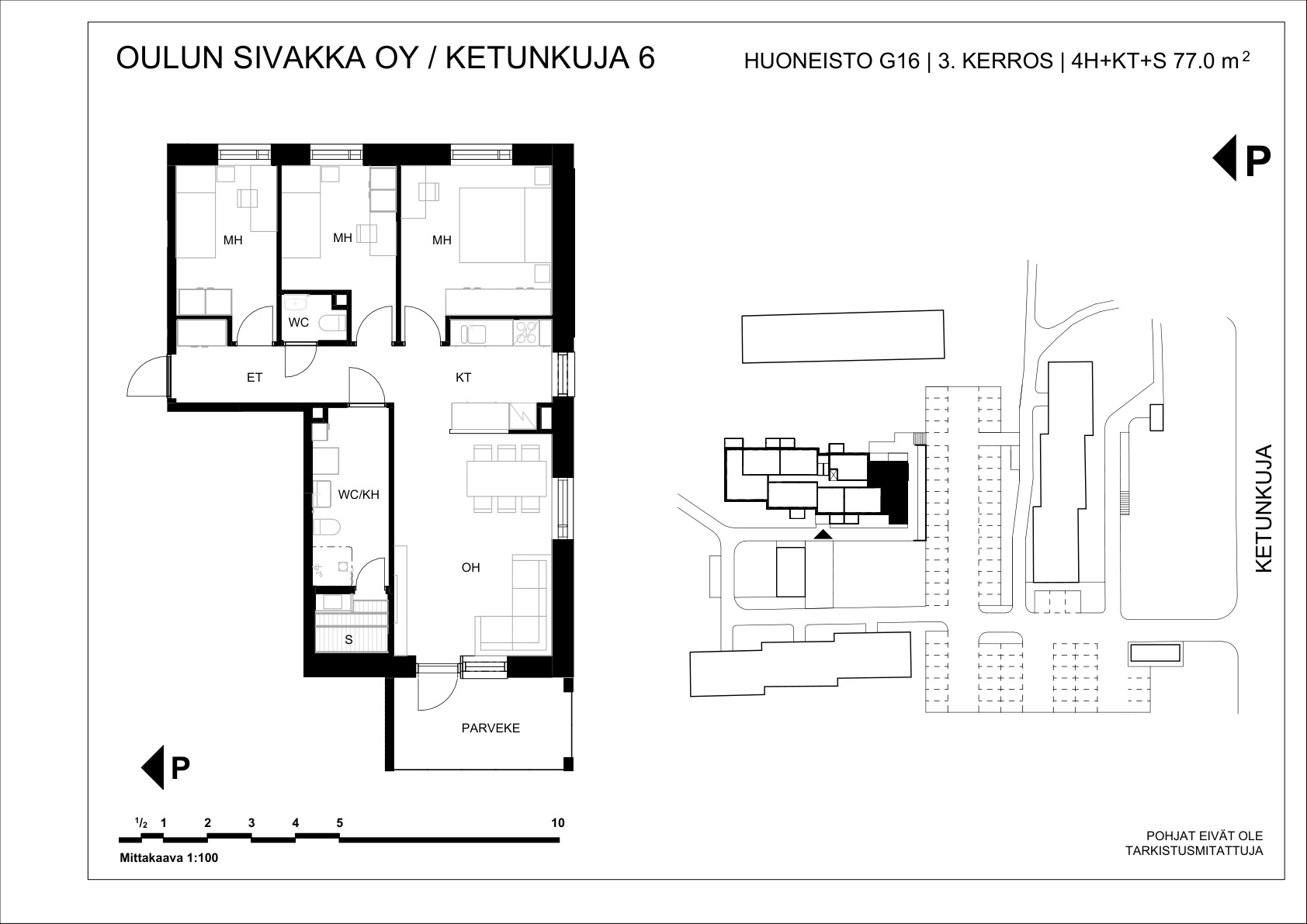 | 4h+kt+s | 77 m² | 869 – 887 €/kk | 3 kpl |
