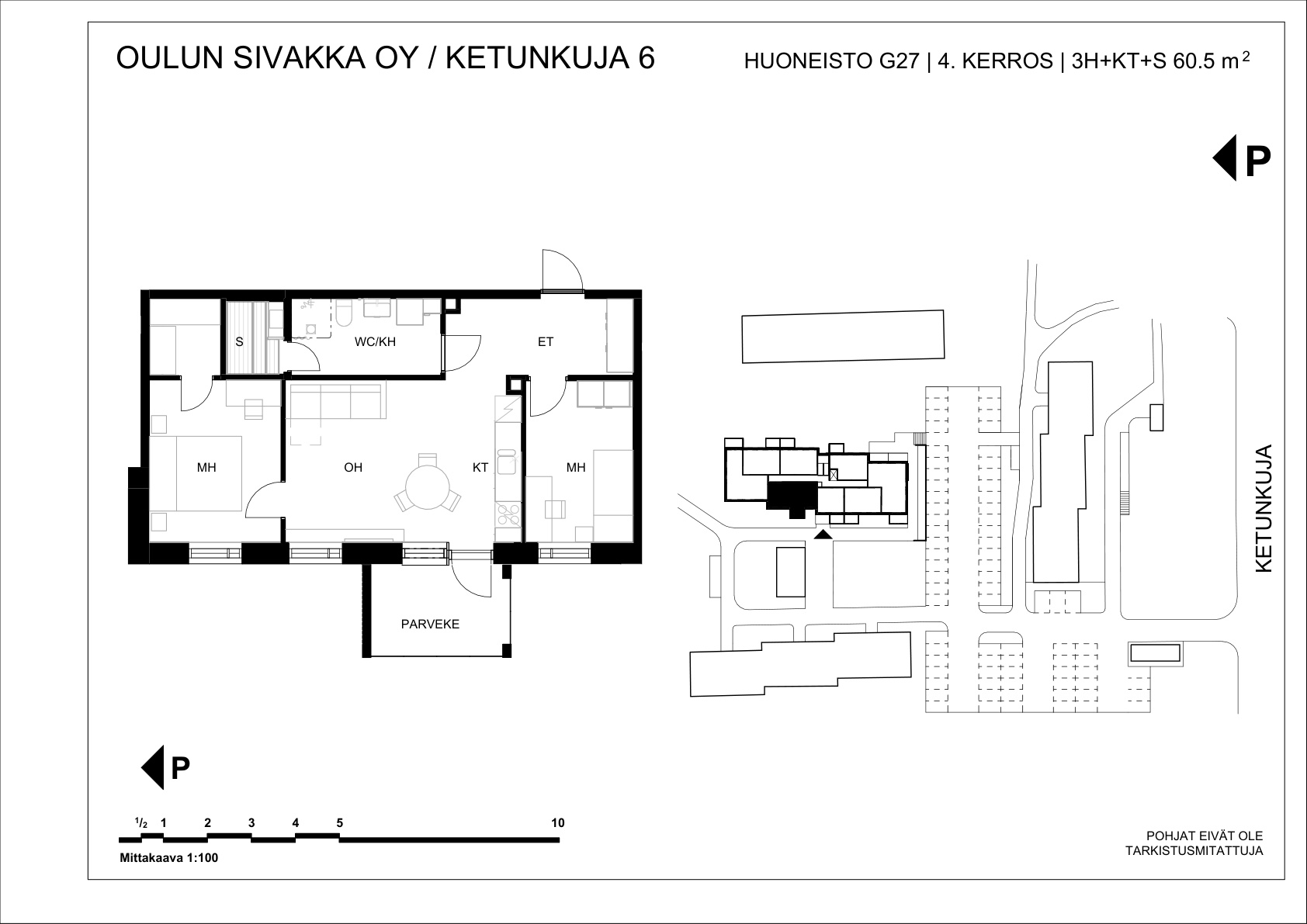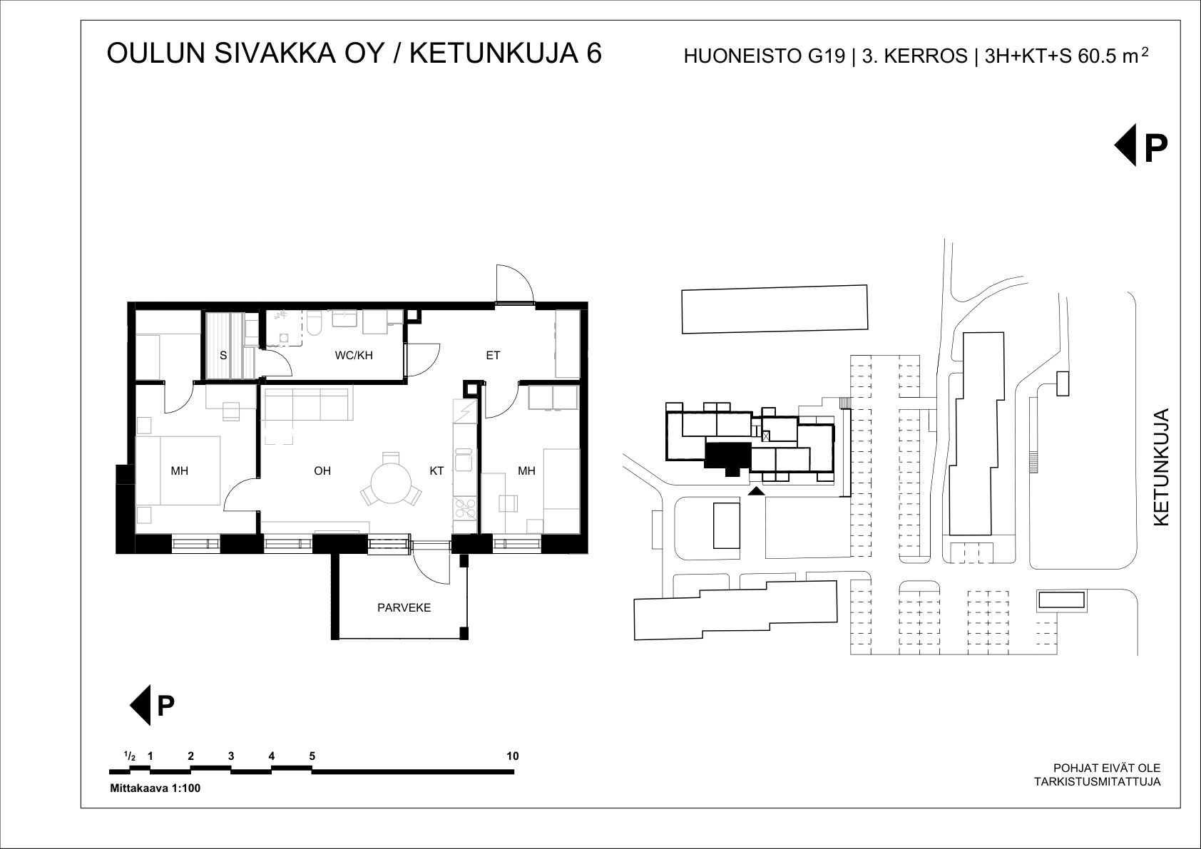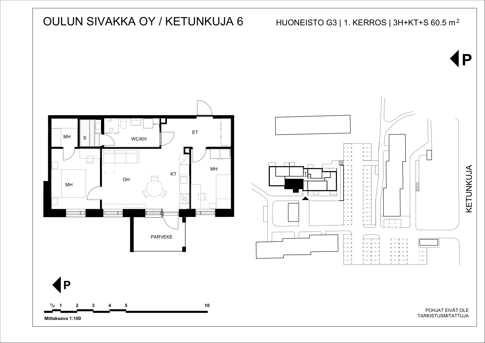 | 3h+kt+s | 60,5 m² | 751 – 773 €/kk | 4 kpl |