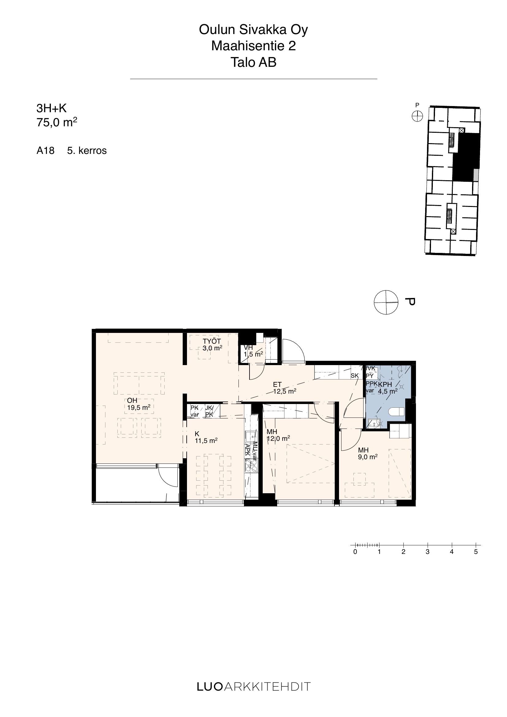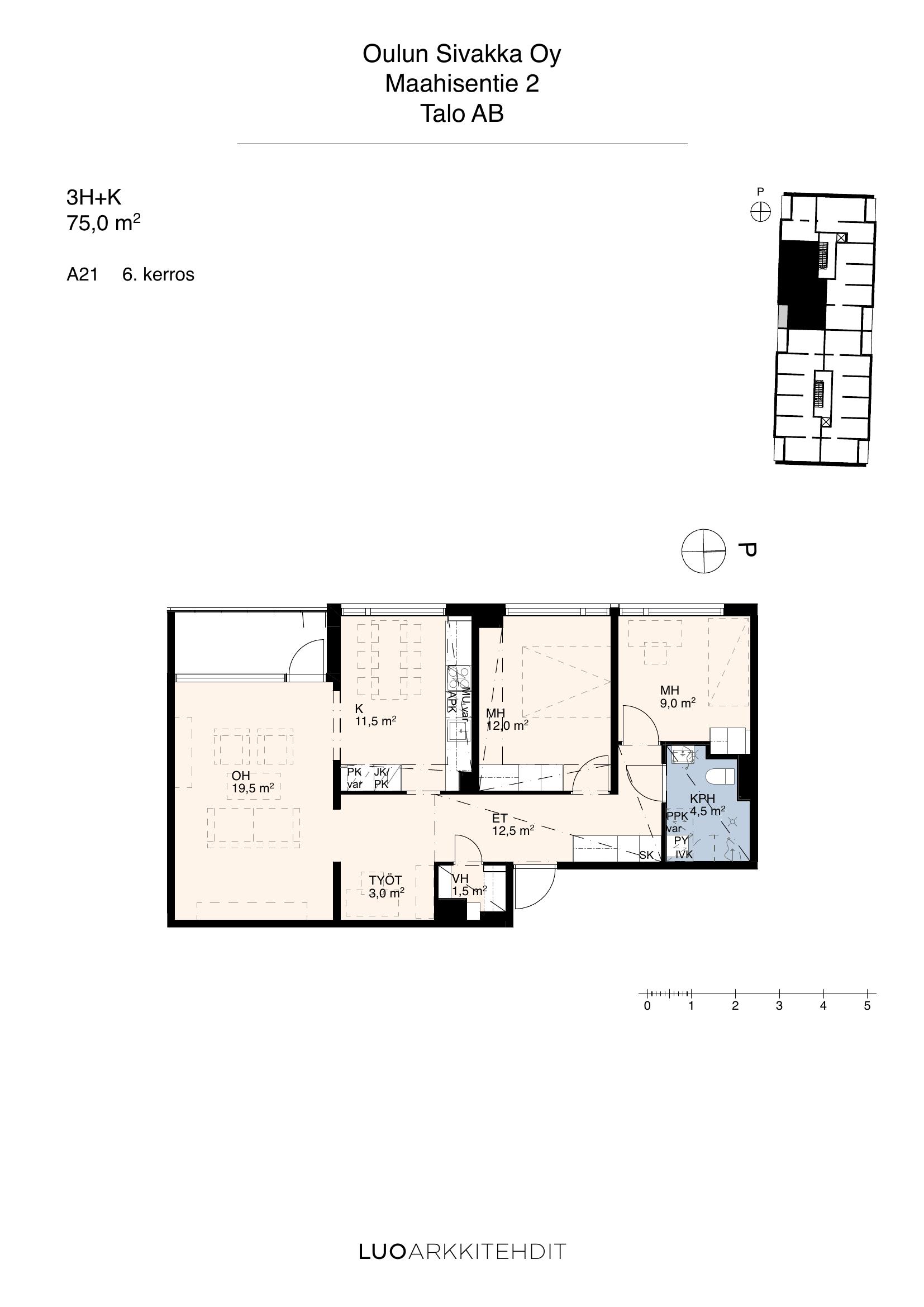 | 3h+k | 75,0 m² | 16 kpl |