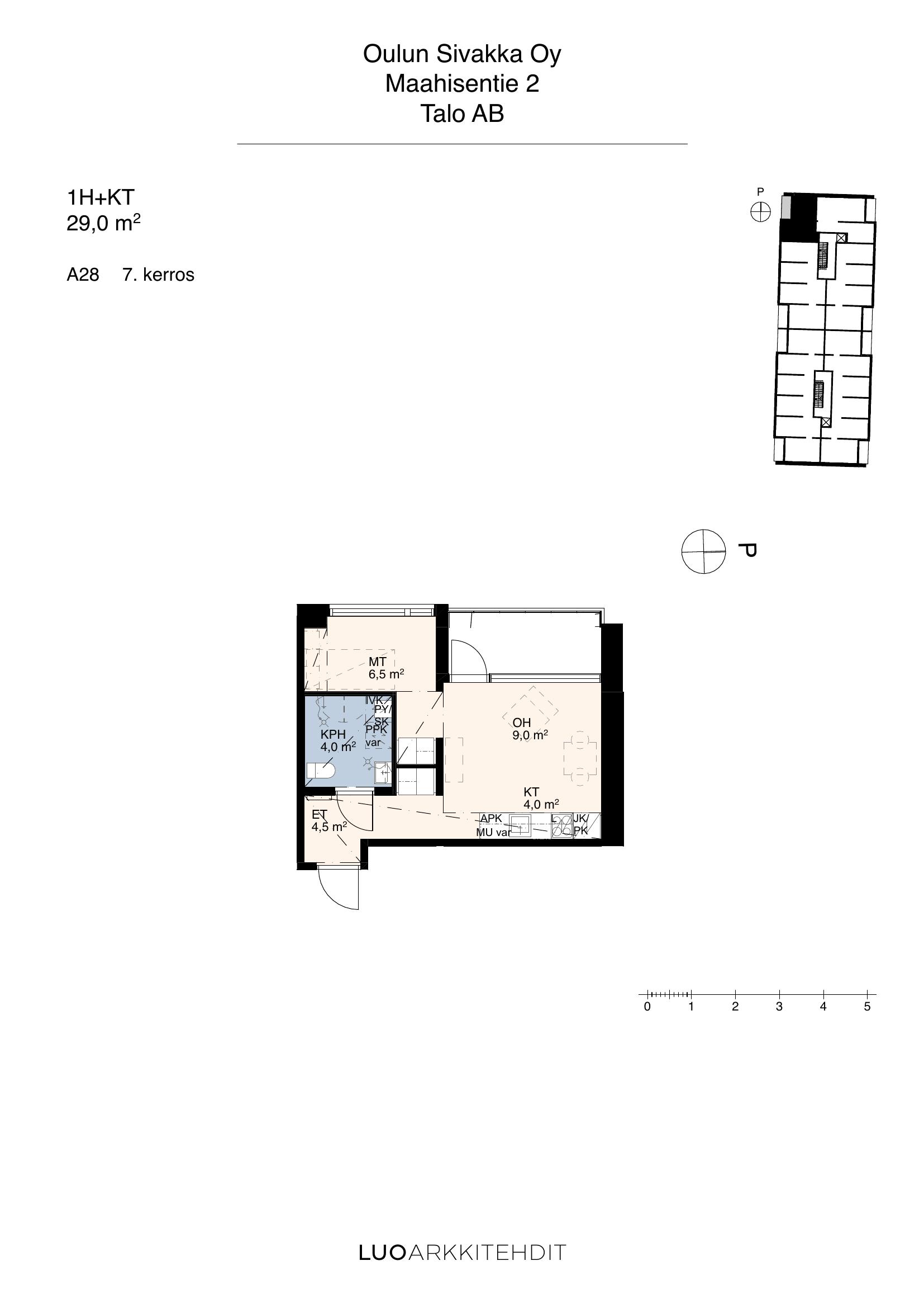 | 1h+kt | 29,0 m² | 8 kpl |