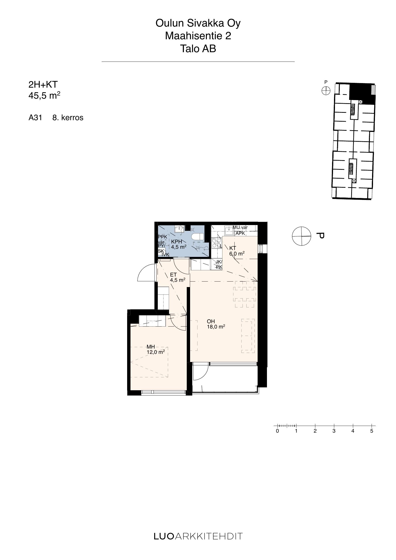 | 2h+kt | 45,5 m² | 8 kpl |