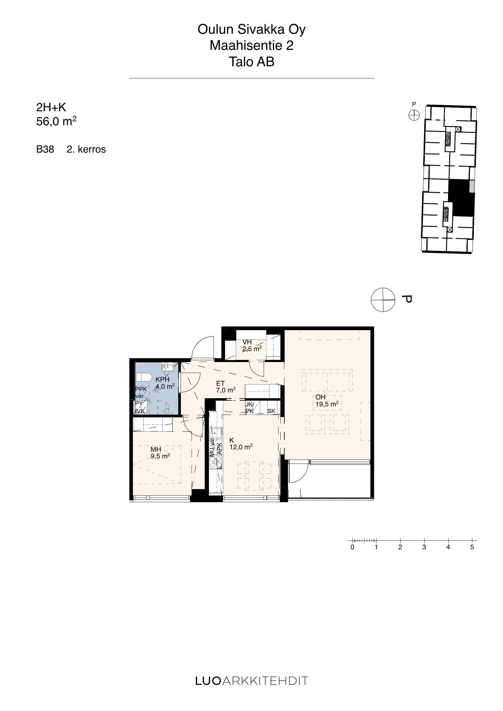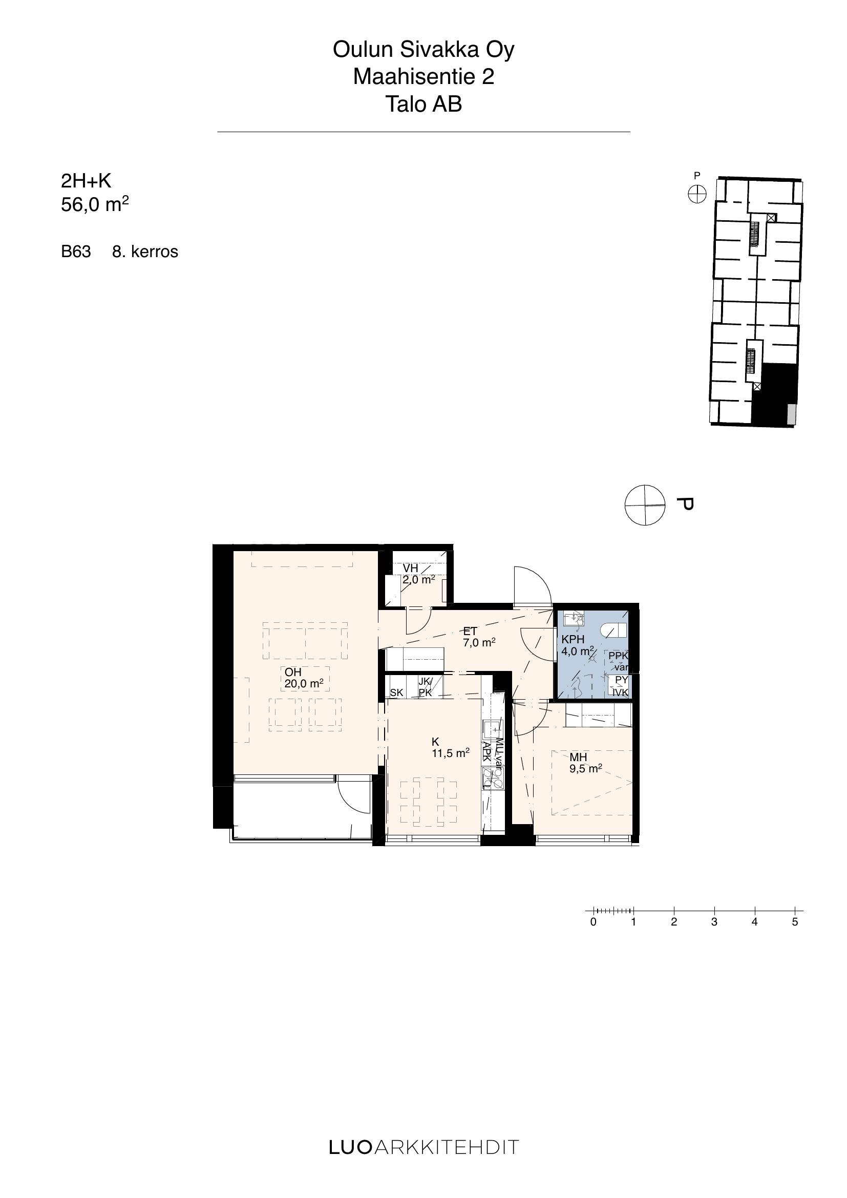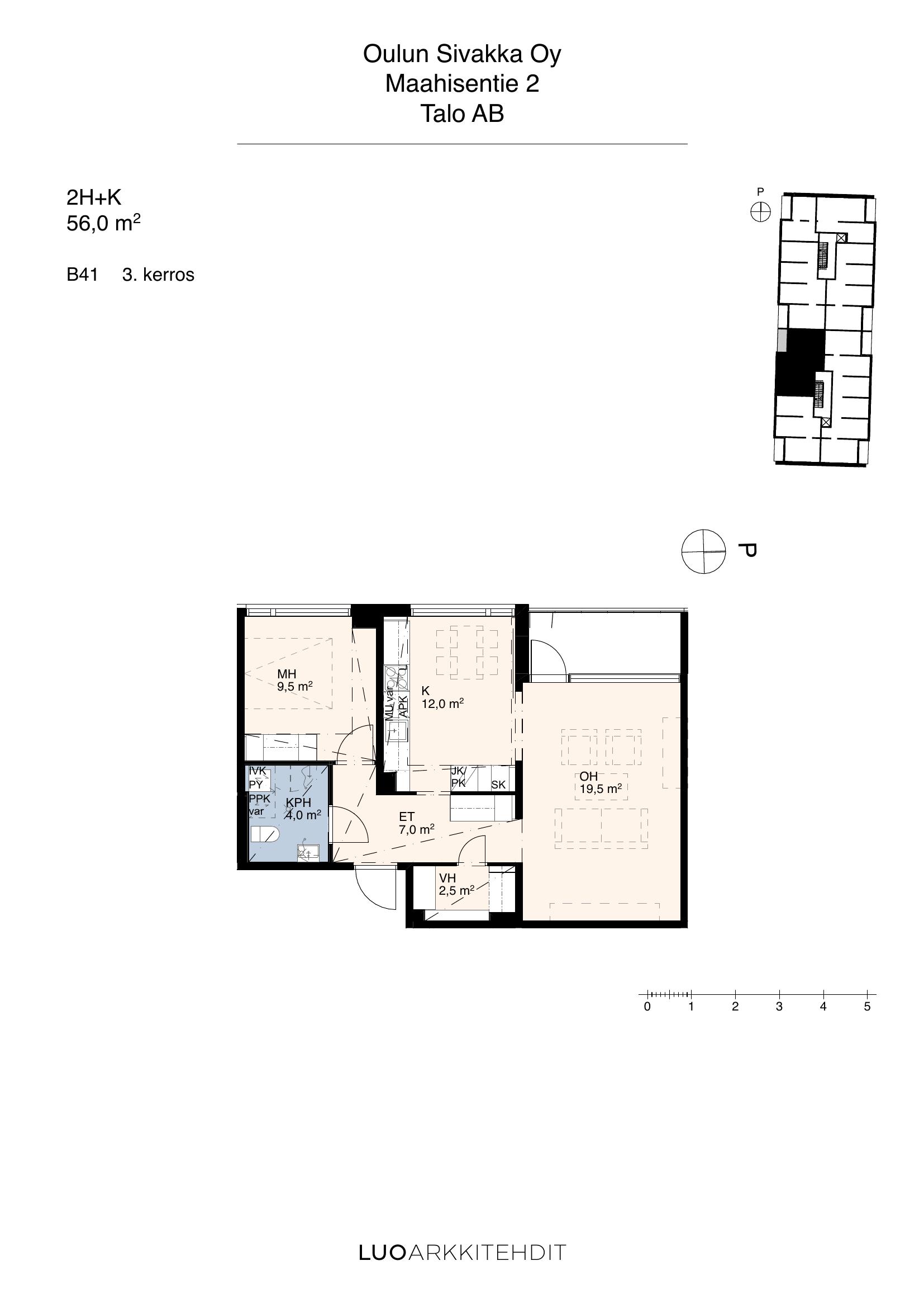 | 3h+kt+s | 56 m² | 817 €/kk | 1 kpl |