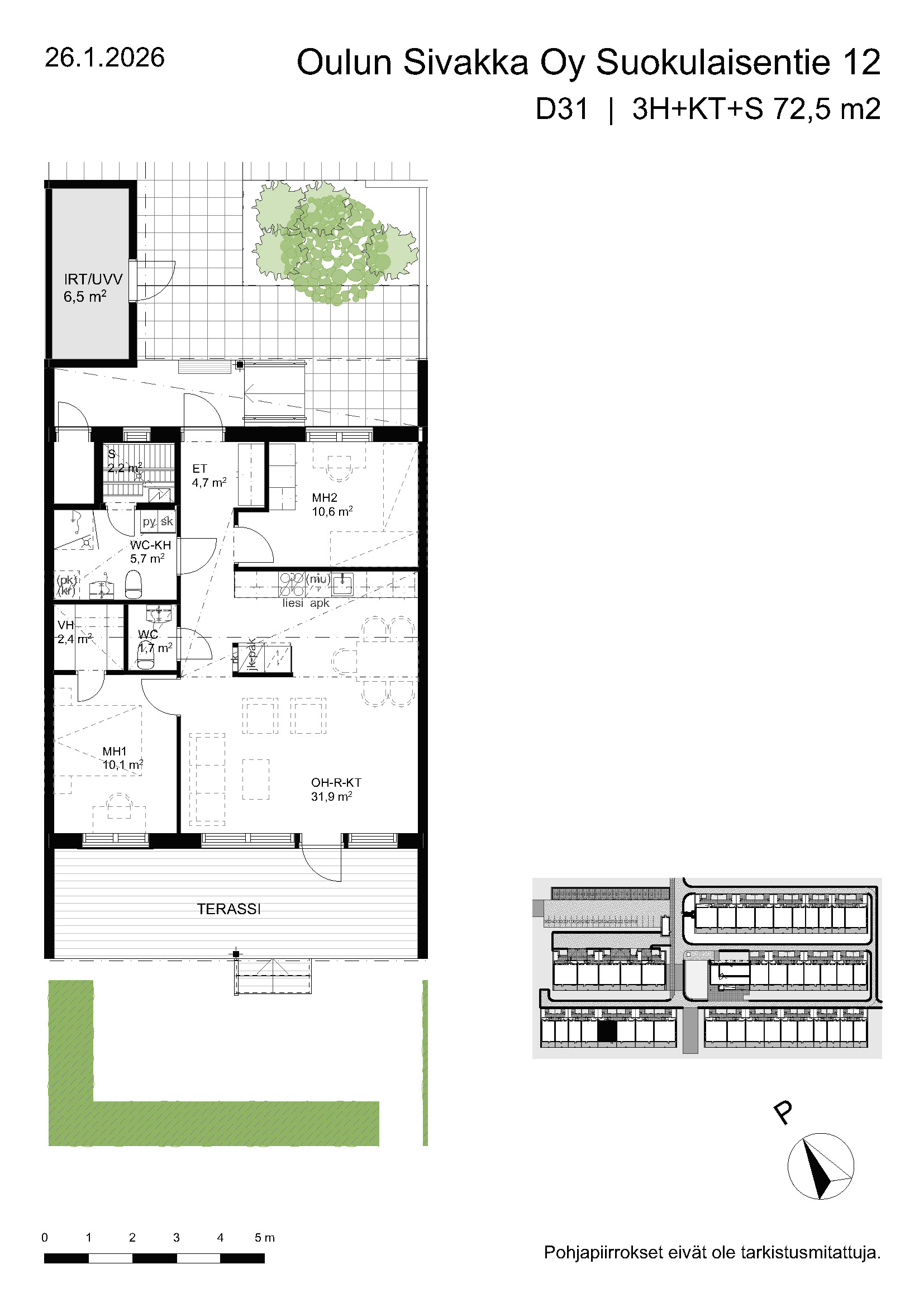 | 1h+kt | 32,5 m² | 496 – 506 €/kk | 3 kpl |