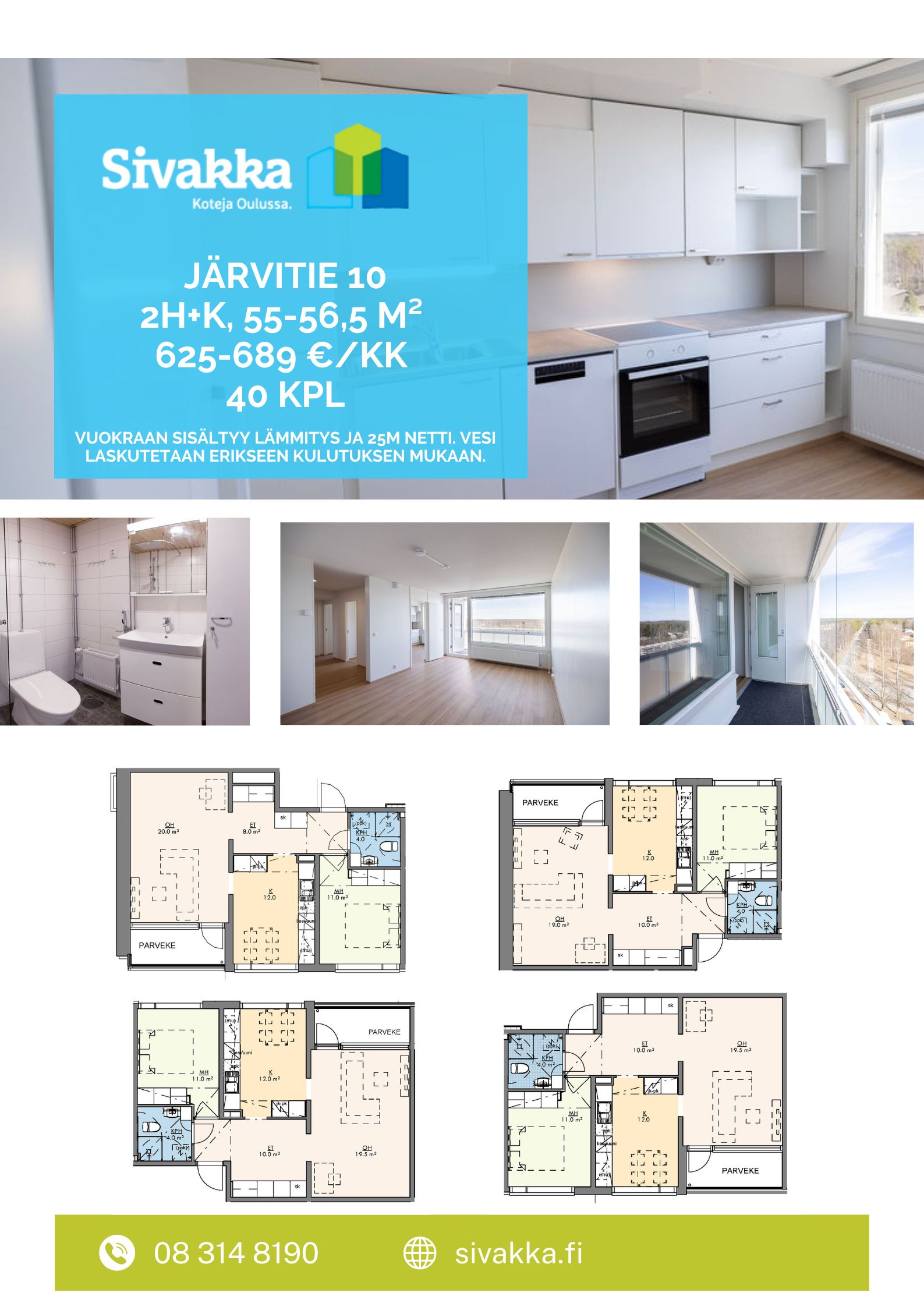 2h+k 55-56,5 m² 625-689 €/kk 40 kpl